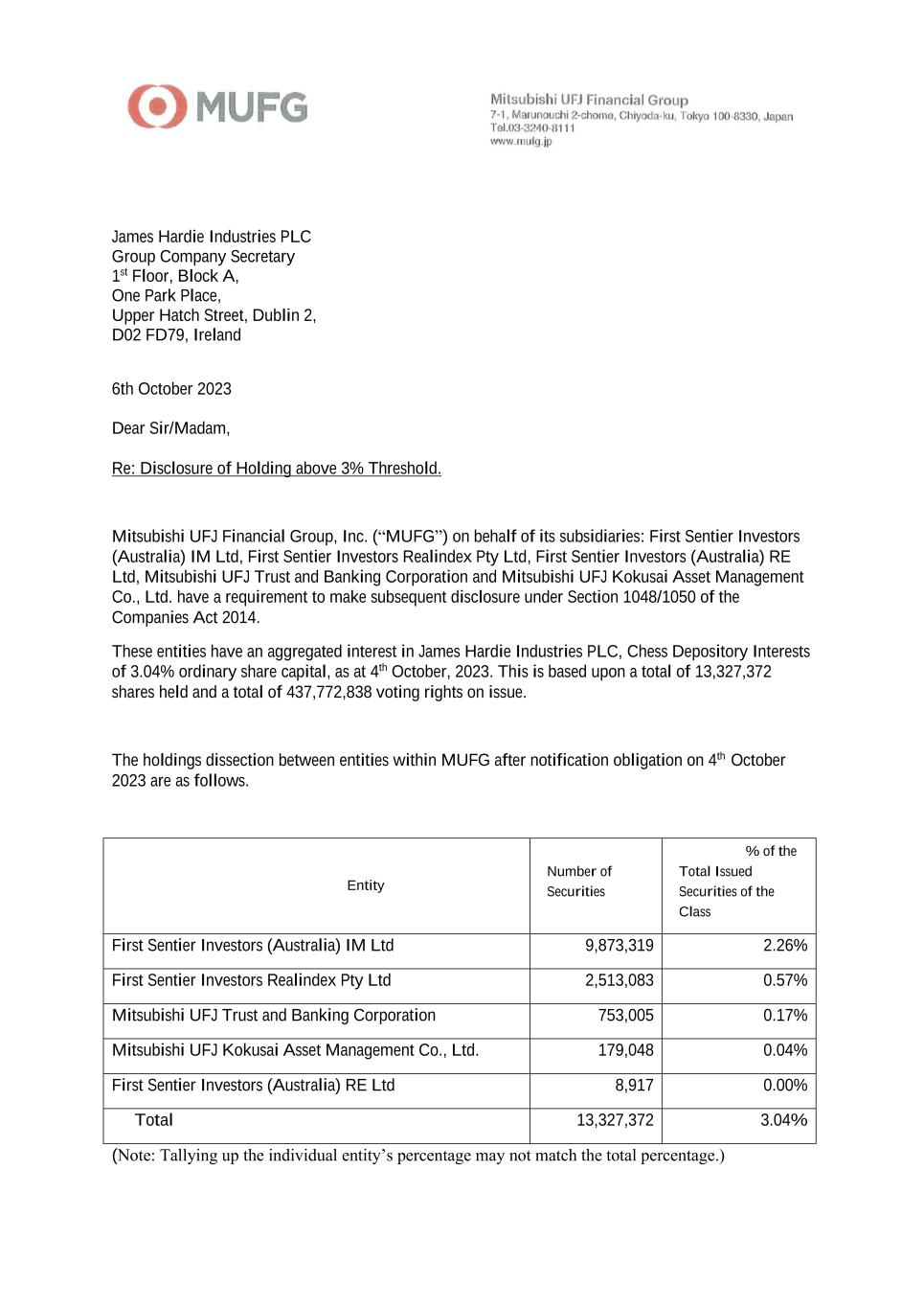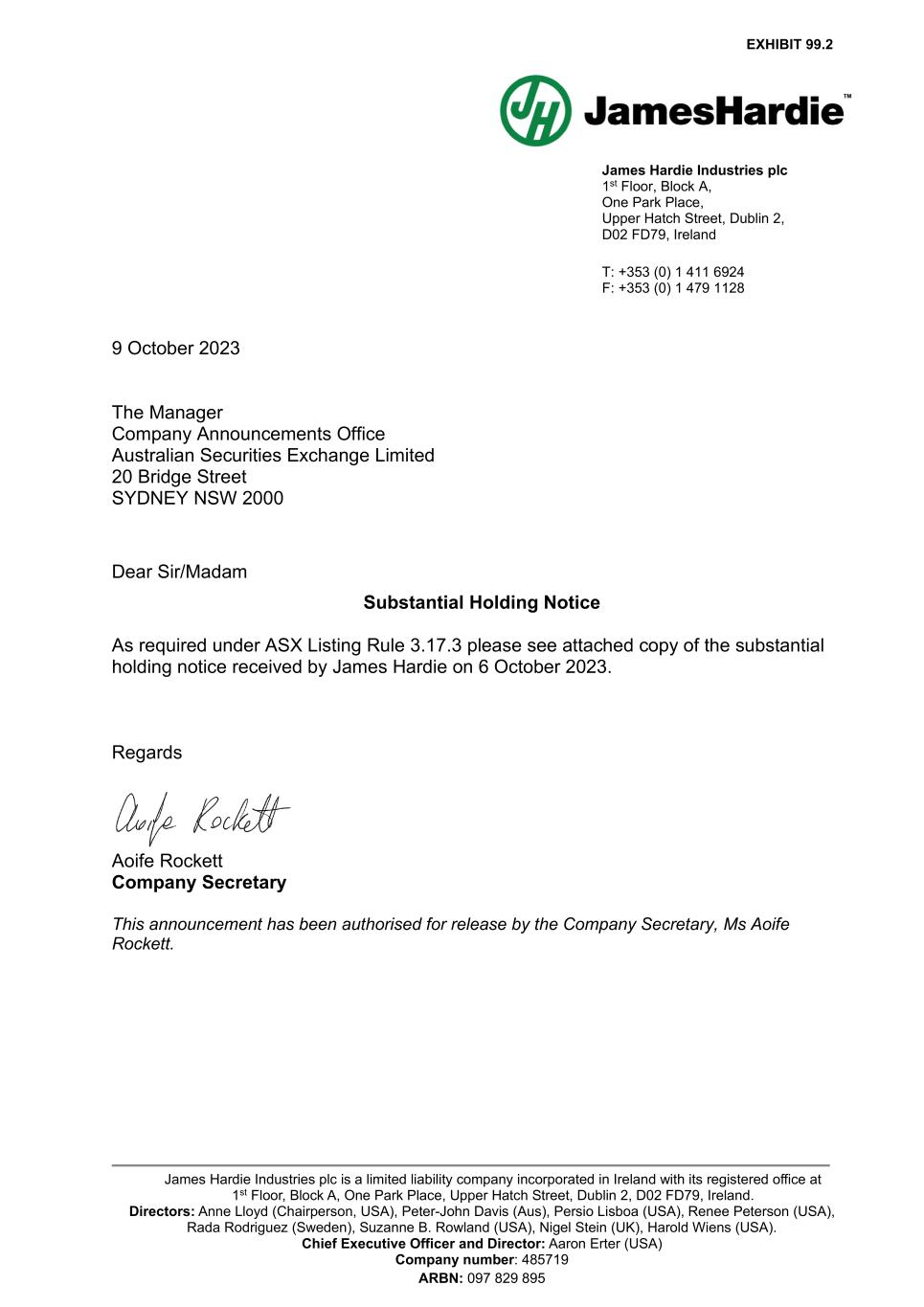 Forward-looking statements are based on the Company’s current expectations, estimates and assumptions and because forward-looking statements address future results, events and conditions, they, by their very nature, involve inherent risks and uncertainties, many of which are unforeseeable and beyond the Company’s control. Such known and unknown risks, uncertainties and other factors may cause actual results, performance or other achievements to differ materially from the anticipated results, performance or achievements expressed, projected or implied by these forward-looking statements. These factors, some of which are discussed under “Risk Factors” in Section 3 of the Form 20-F filed with the Securities and Exchange Commission on 16 May 2023, include, but are not limited to: all matters relating to or arising out of the prior manufacture of products that contained asbestos by current and former Company subsidiaries; required contributions to AICF, any shortfall in AICF funding and the effect of currency exchange rate movements on the amount recorded in the Company’s financial statements as an asbestos liability; compliance with and changes in tax laws and treatments; competition and product pricing in the markets in which the Company operates; the consequences of product failures or defects; exposure to environmental, asbestos, putative consumer class action or other legal proceedings; general economic and market conditions; the supply and cost of raw materials; possible increases in competition and the potential that competitors could copy the Company’s products; compliance with and changes in environmental and health and safety laws; risks of conducting business internationally; compliance with and changes in laws and regulations; currency exchange risks; dependence on customer preference and the concentration of the Company’s customer base; dependence on residential and commercial construction markets; the effect of adverse changes in climate or weather patterns; use of accounting estimates; and all other risks identified in the Company’s reports filed with Australian, Irish and US securities regulatory agencies and exchanges (as appropriate). The Company cautions you that the foregoing list of factors is not exhaustive and that other risks and uncertainties may cause actual results to differ materially from those referenced in the Company’s forward-looking statements. Forward-looking statements speak only as of the date they are made and are statements of the Company’s current expectations concerning future results, events and conditions. The Company assumes no obligation to update any forward-looking statements or information except as required by law.