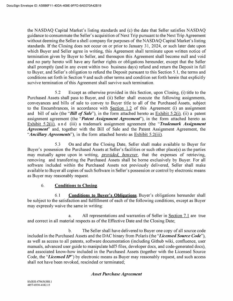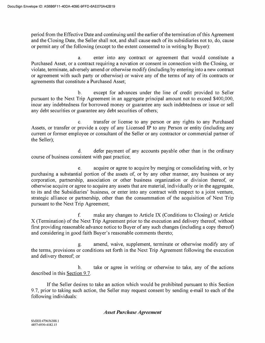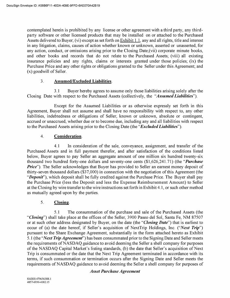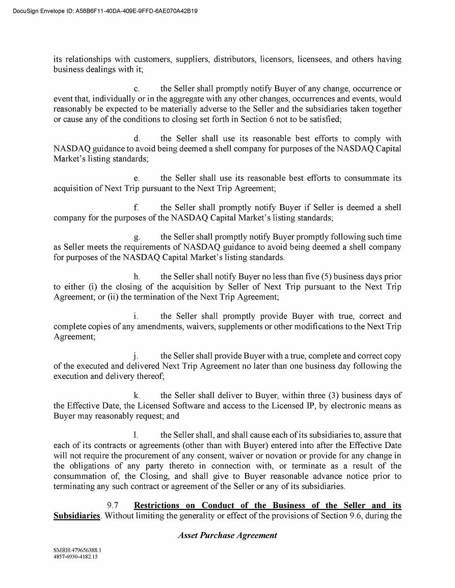 The closing under the Asset Purchase Agreement is expected to occur subsequent to the closing or termination of our previously announced acquisition of NextTrip Holdings, Inc. The parties’ respective obligations to close are subject to the accuracy of the parties’ respective representations and warranties and performance of their respective covenants and satisfaction or waiver of other customary conditions specified in the Asset Purchase Agreement.
