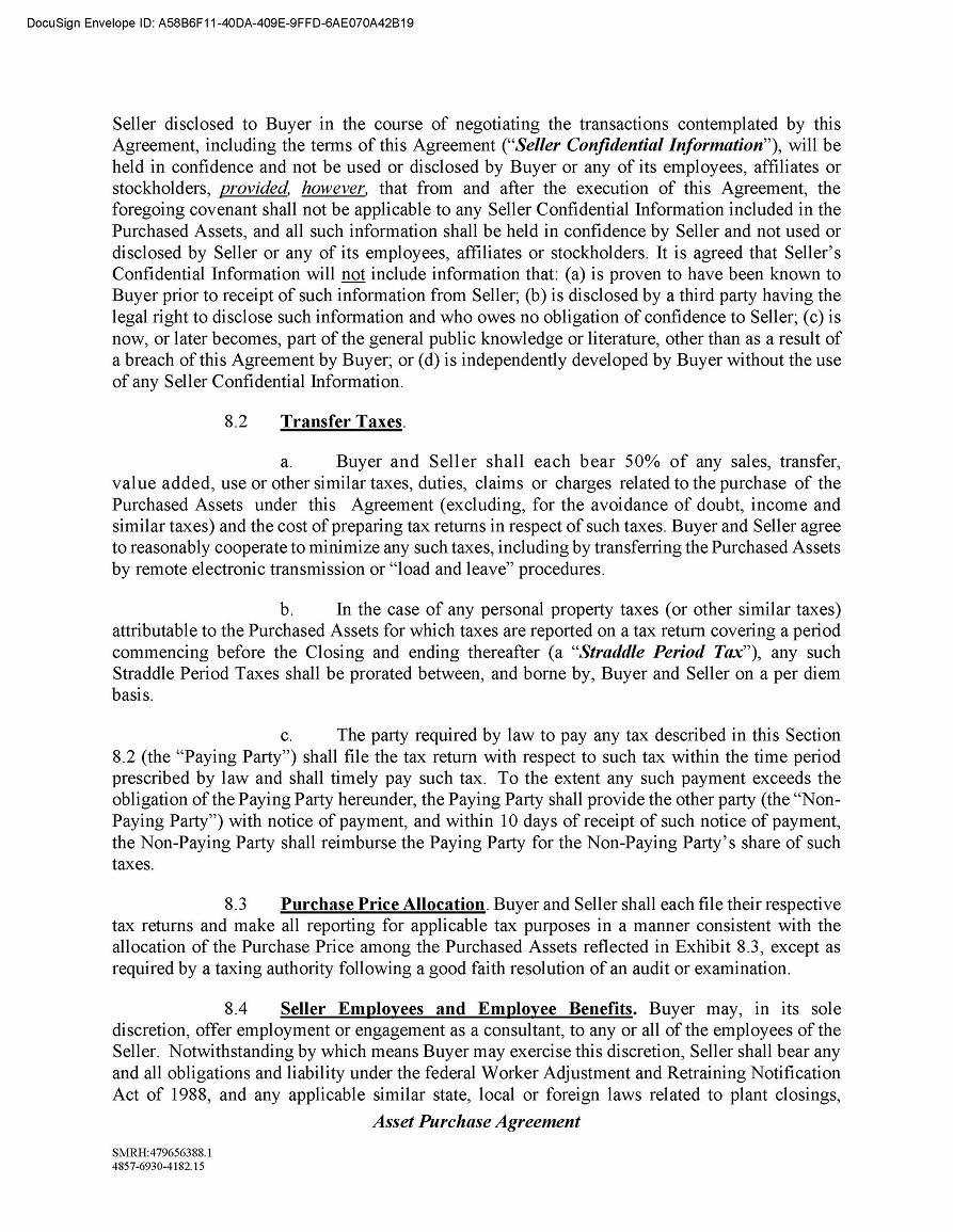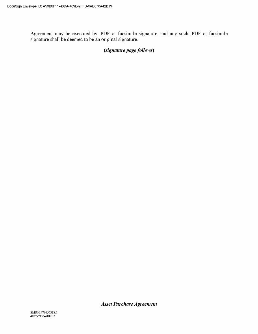 The foregoing description of the Asset Purchase Agreement does not purport to be complete and is subject to and qualified in its entirety by the full text of the Asset Purchase Agreement, a copy of which is filed as Exhibit 10.1 to this Current Report on Form 8-K and is incorporated herein by reference.
