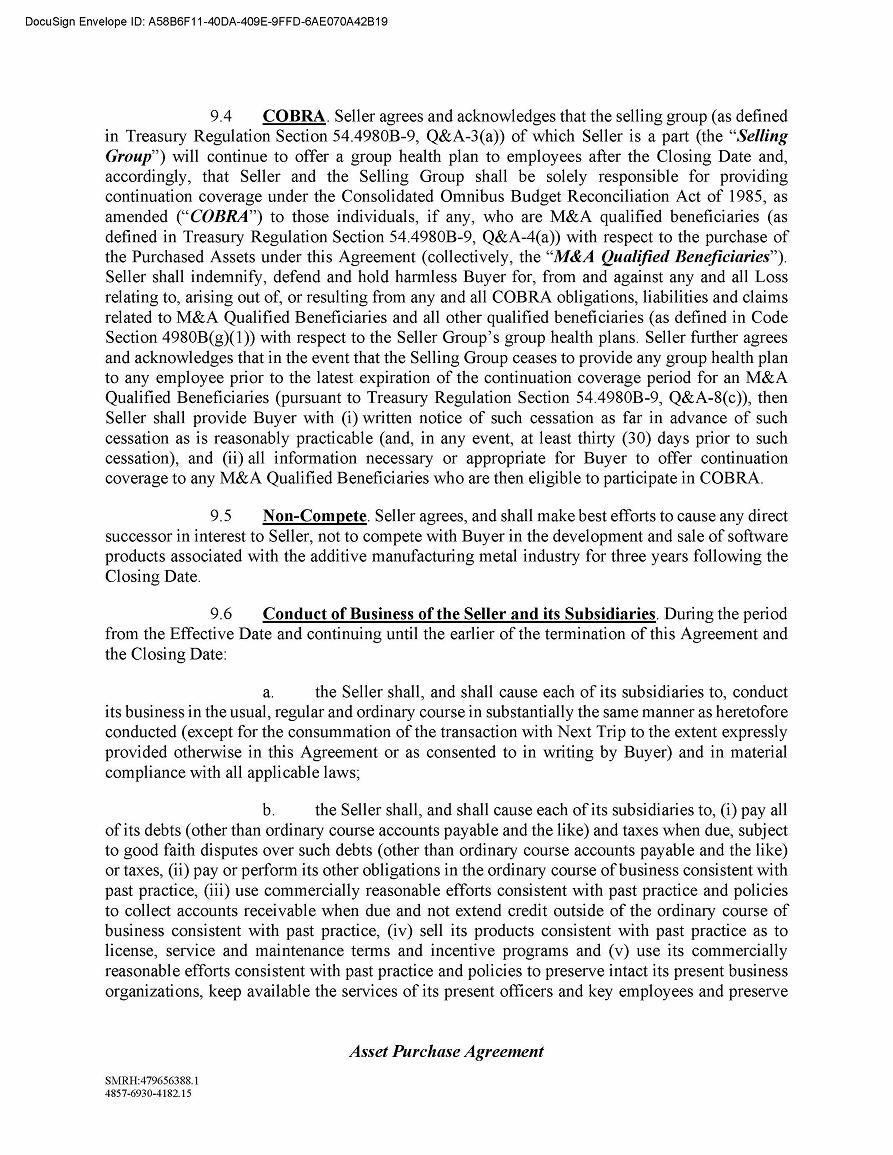 | ● | Until the NextTrip transaction closes, Sigma Additive Solutions and NextTrip will remain separate, independent companies and will continue to operate as such. | |