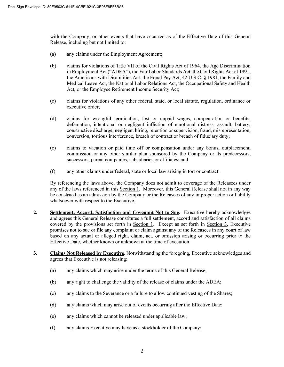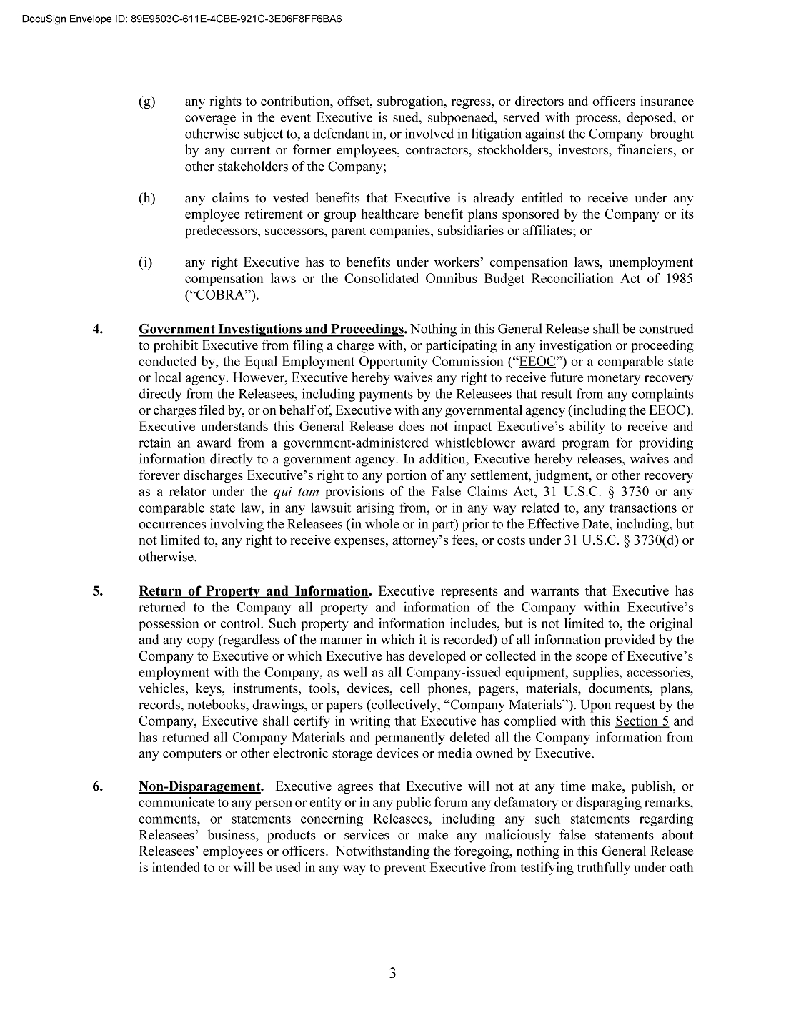 The foregoing description of the Release does not purport to be complete and is qualified in its entirety by reference to the copy of the Release filed as Exhibit 10.1 to this Current Report on Form 8-K, which is incorporated herein by reference.