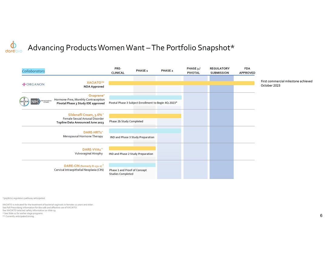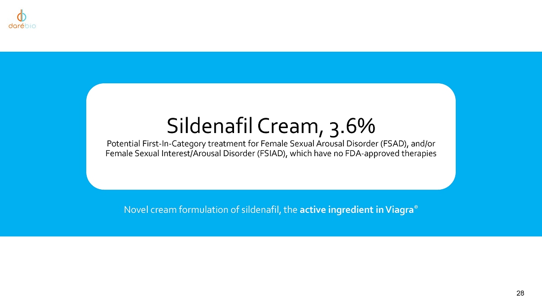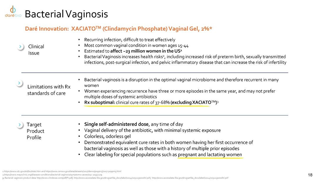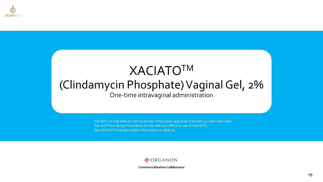 The New Drug Application for XACIATO was supported by positive results from the DARE-BVFREE Phase 3 randomized, multi-center, double-blinded, placebo-controlled clinical trial evaluating XACIATO (formerly known as DARE-BV1) for the treatment of bacterial vaginosis (NCT04370548).