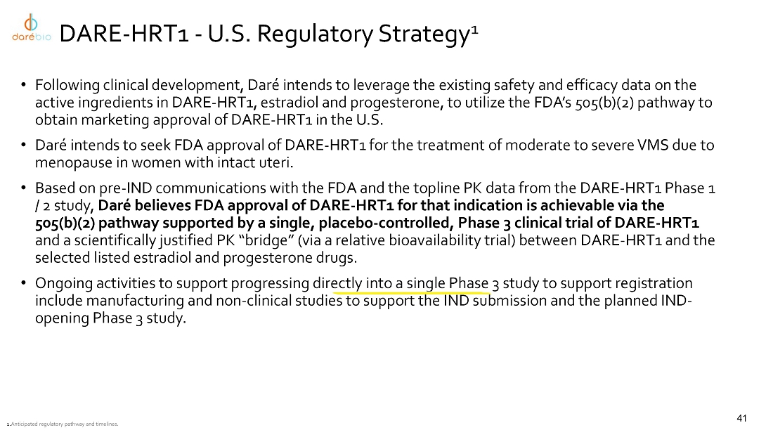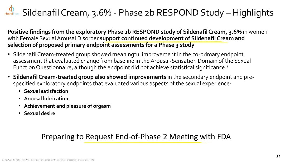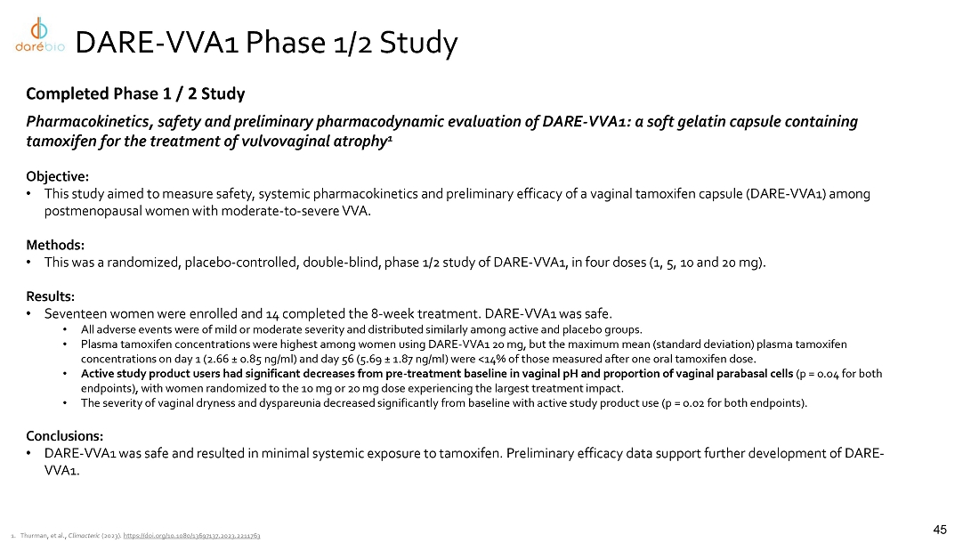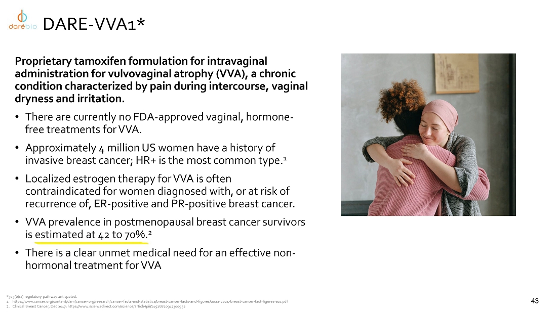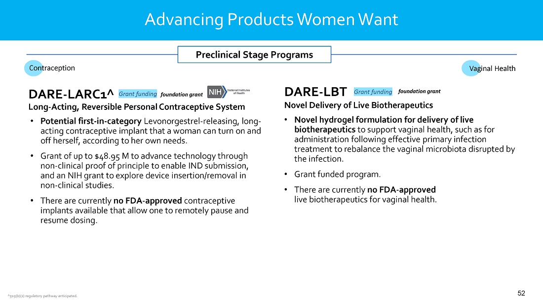 The New Drug Application for XACIATO was supported by positive results from the DARE-BVFREE Phase 3 randomized, multi-center, double-blinded, placebo-controlled clinical trial evaluating XACIATO (formerly known as DARE-BV1) for the treatment of bacterial vaginosis (NCT04370548).