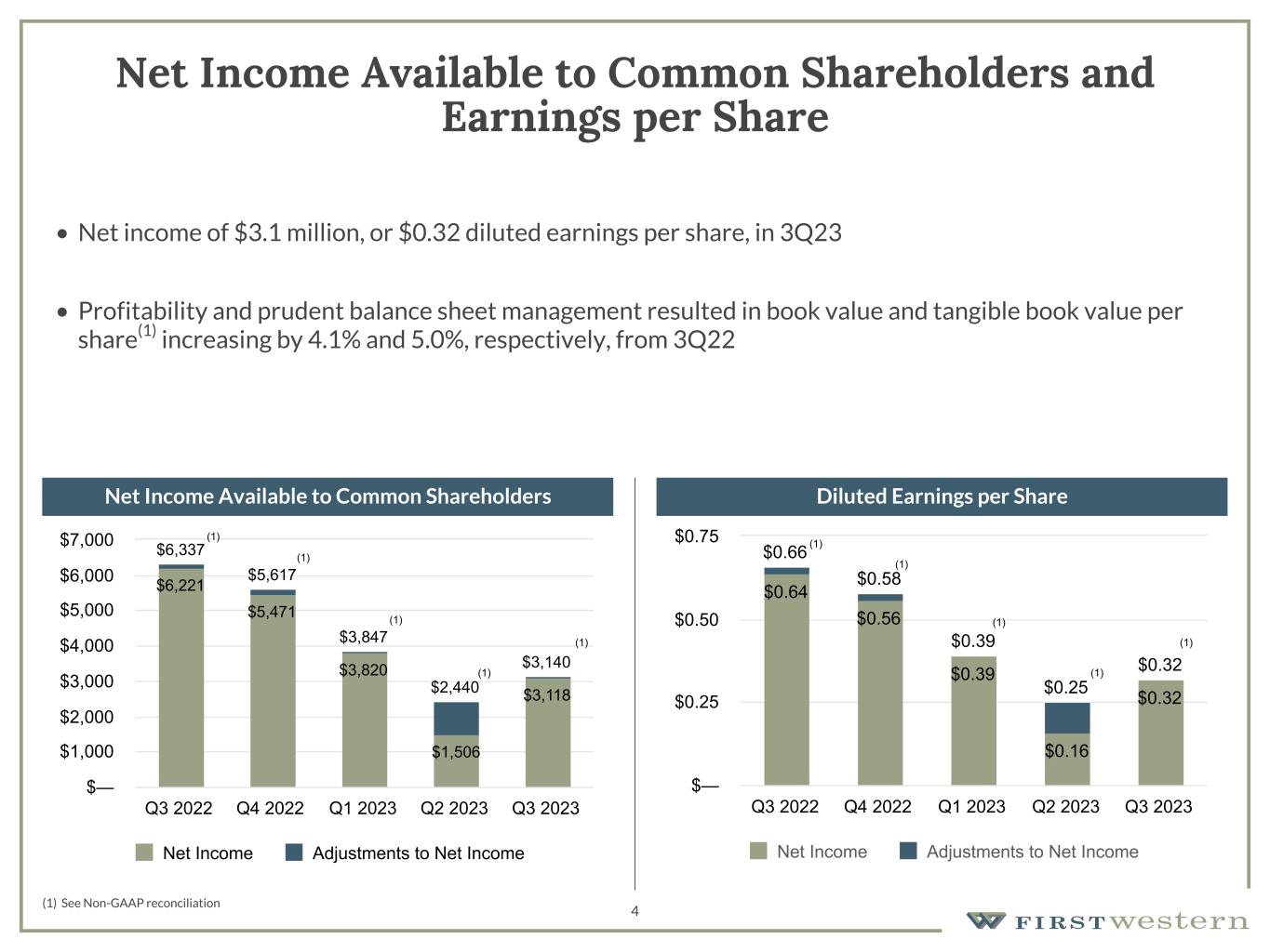 •Net income available to common shareholders of $3.1 million in Q3 2023, compared to $1.5 million in Q2 2023 and $6.2 million in Q3 2022