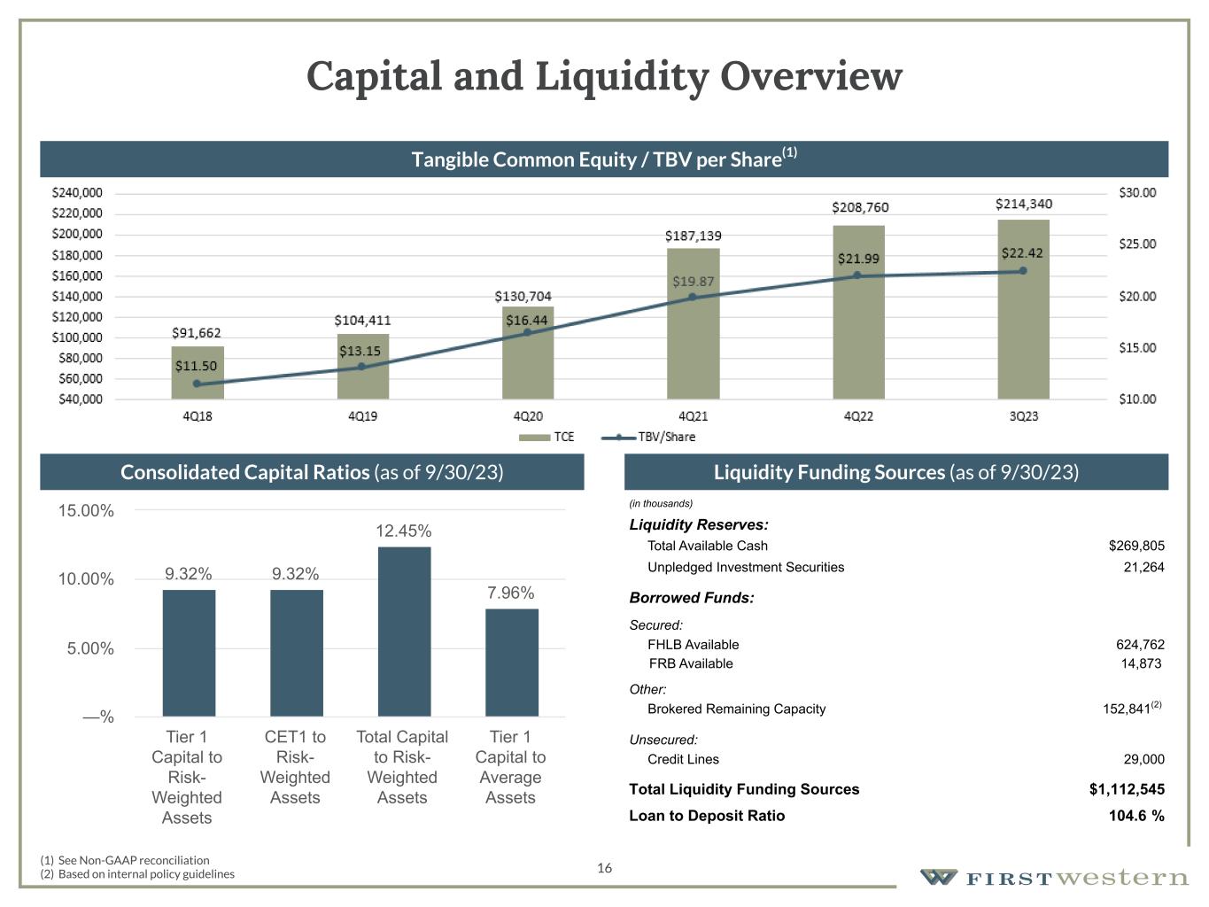 (2)As of September 30, 2023 and June 30, 2023, acquired loans totaling $216.1 million and $225.4 million, respectively, are included in the allowance for credit loss calculation and are therefore not removed in calculating adjusted total loans.