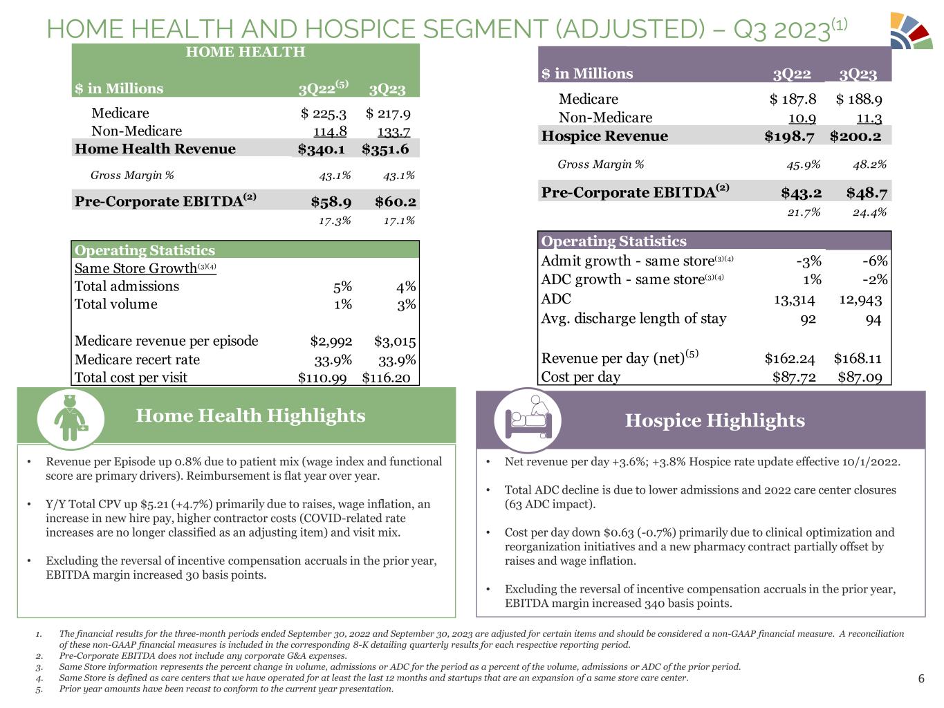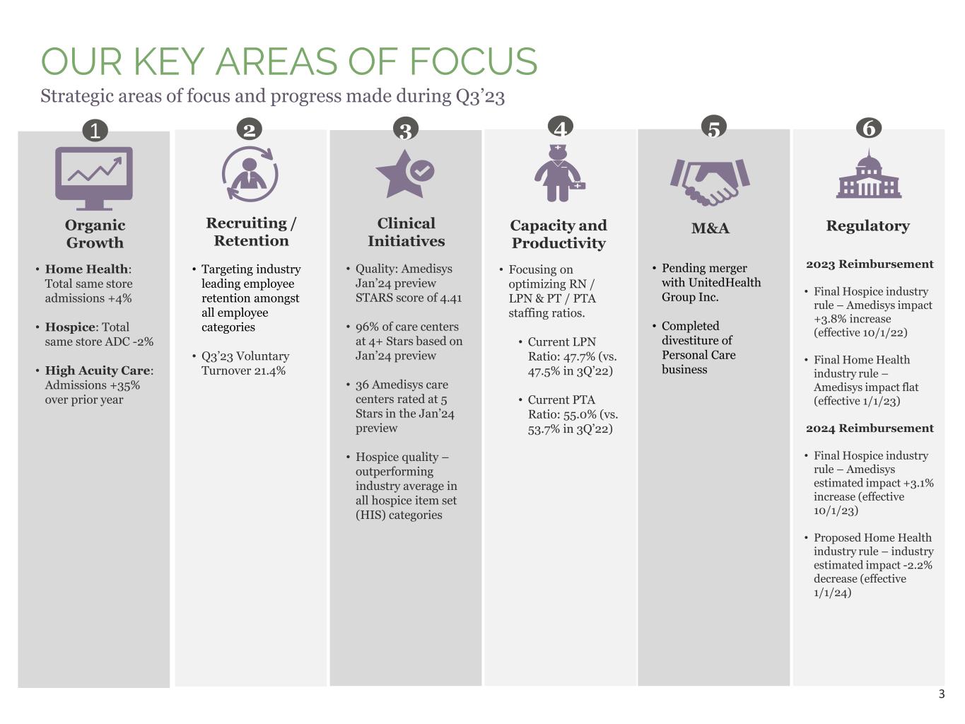 The supplemental slides provided in connection with the third quarter 2023 earnings release can be found on the Investor Relations page of our website. In light of the pending merger of the Company with UnitedHealth Group Incorporated, Amedisys will not conduct a quarterly earnings call to discuss the third quarter results.