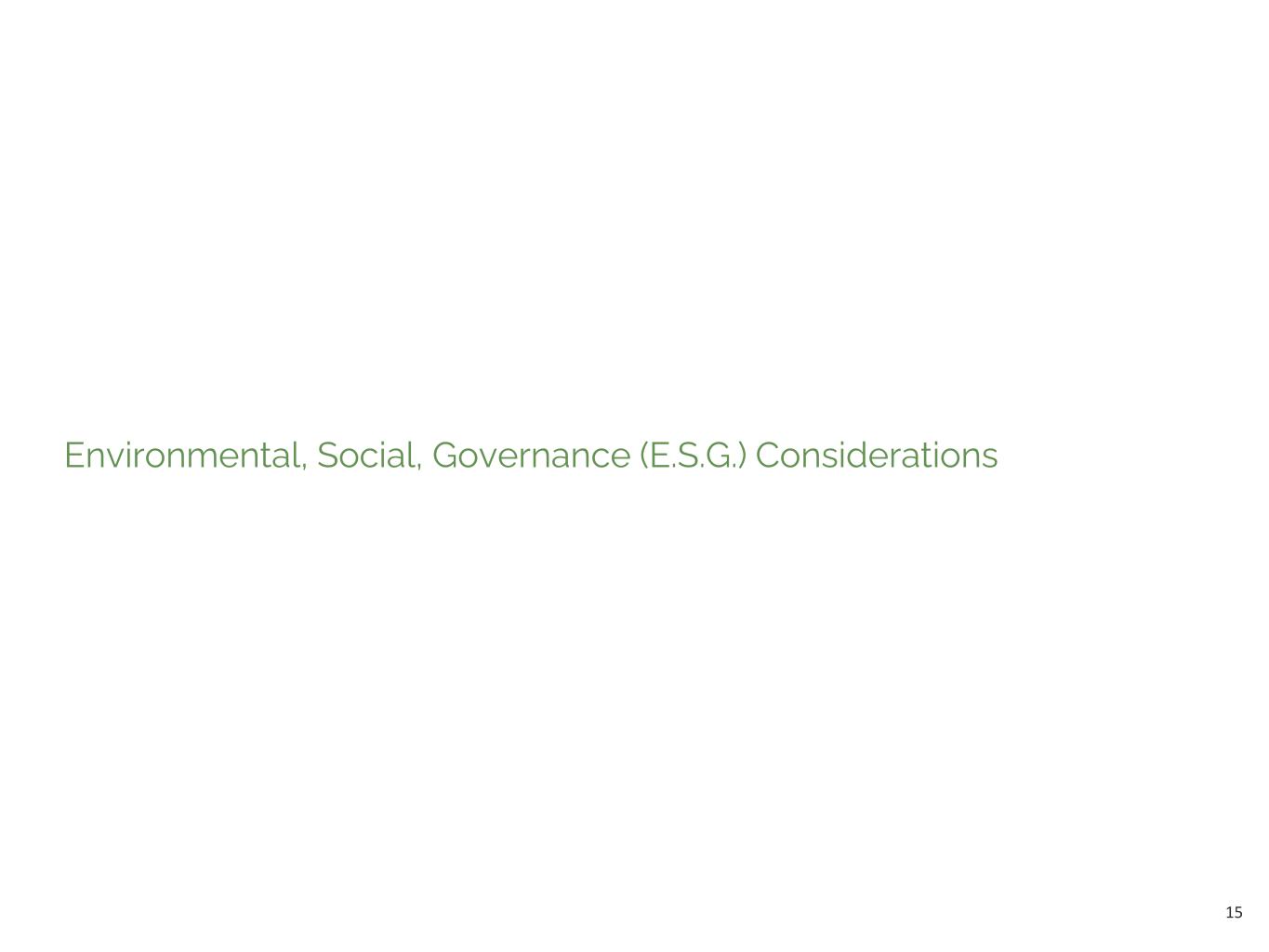 15 Environmental, Social, Governance (E.S.G.) Considerations