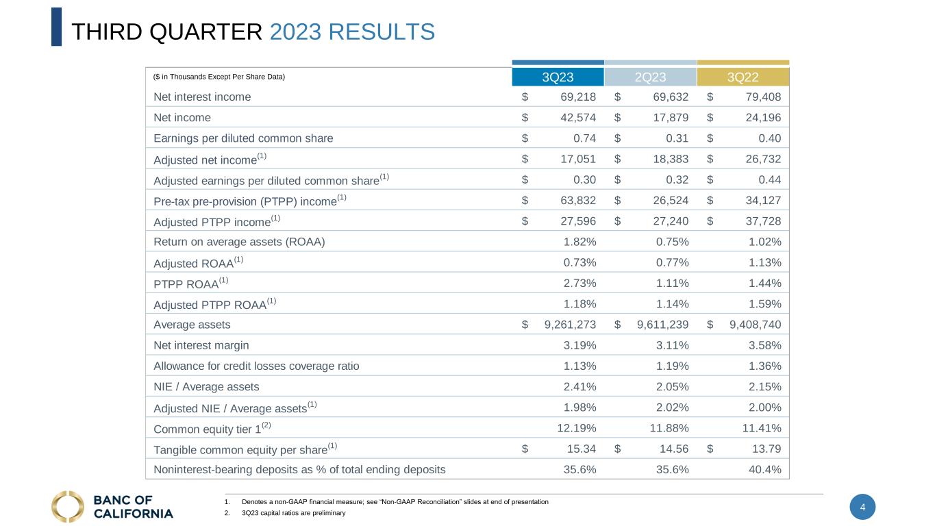 99.1 Banc of California, Inc. Press Release dated October 24, 2023.