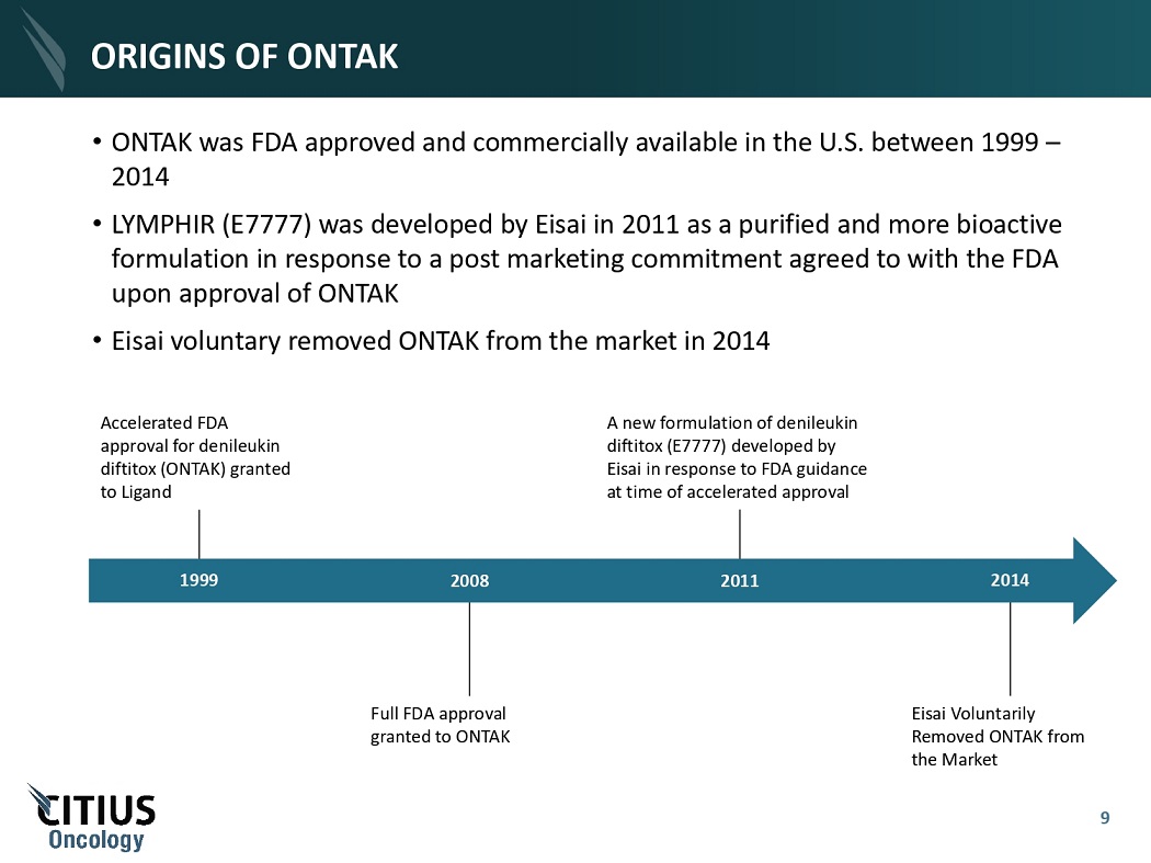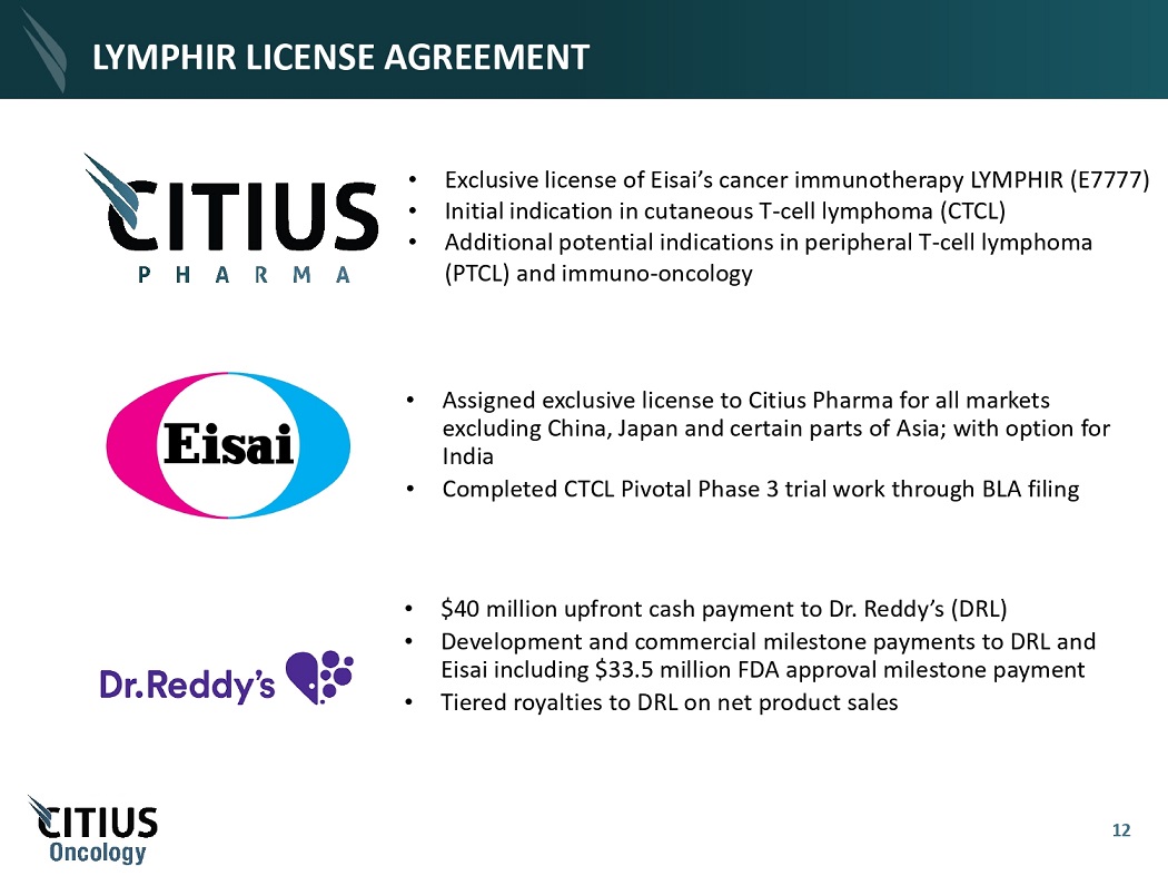 The transaction is expected to provide Citius Oncology with improved access to the public equity markets and thereby facilitate the commercialization of LYMPHIR and position the company to explore additional value creating opportunities more fully.