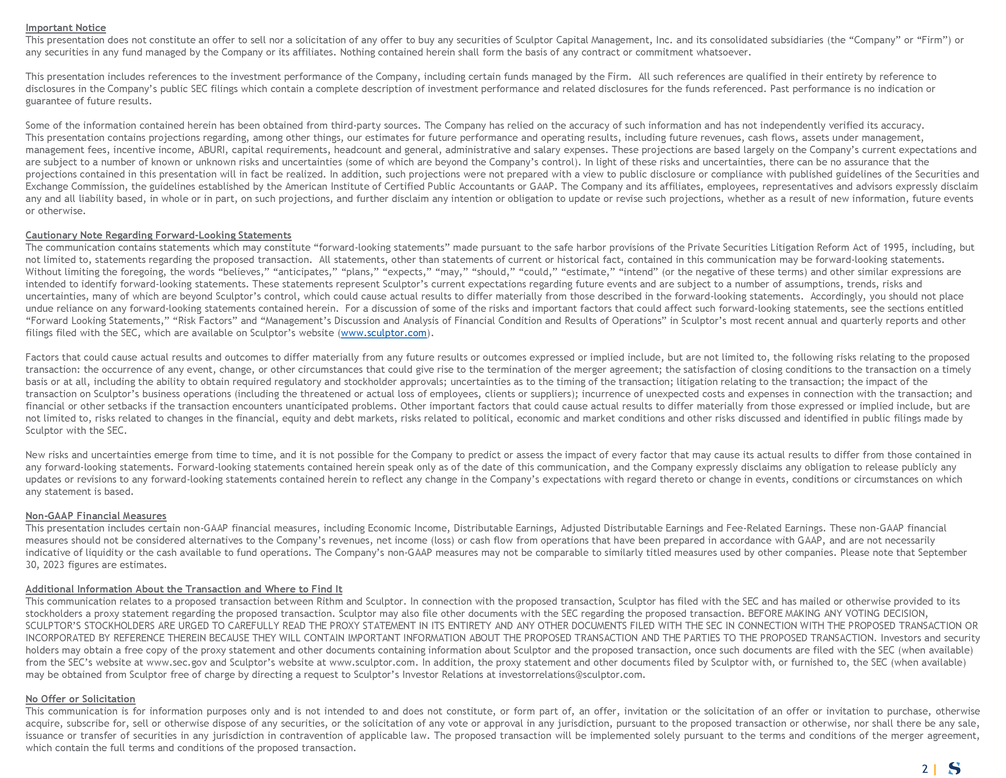 Where to Find It This communication relates to a proposed transaction between Rithm and Sculptor. In connection with the proposed transaction, Sculptor has filed with the SEC and has mailed or otherwise provided to its stockholders a proxy