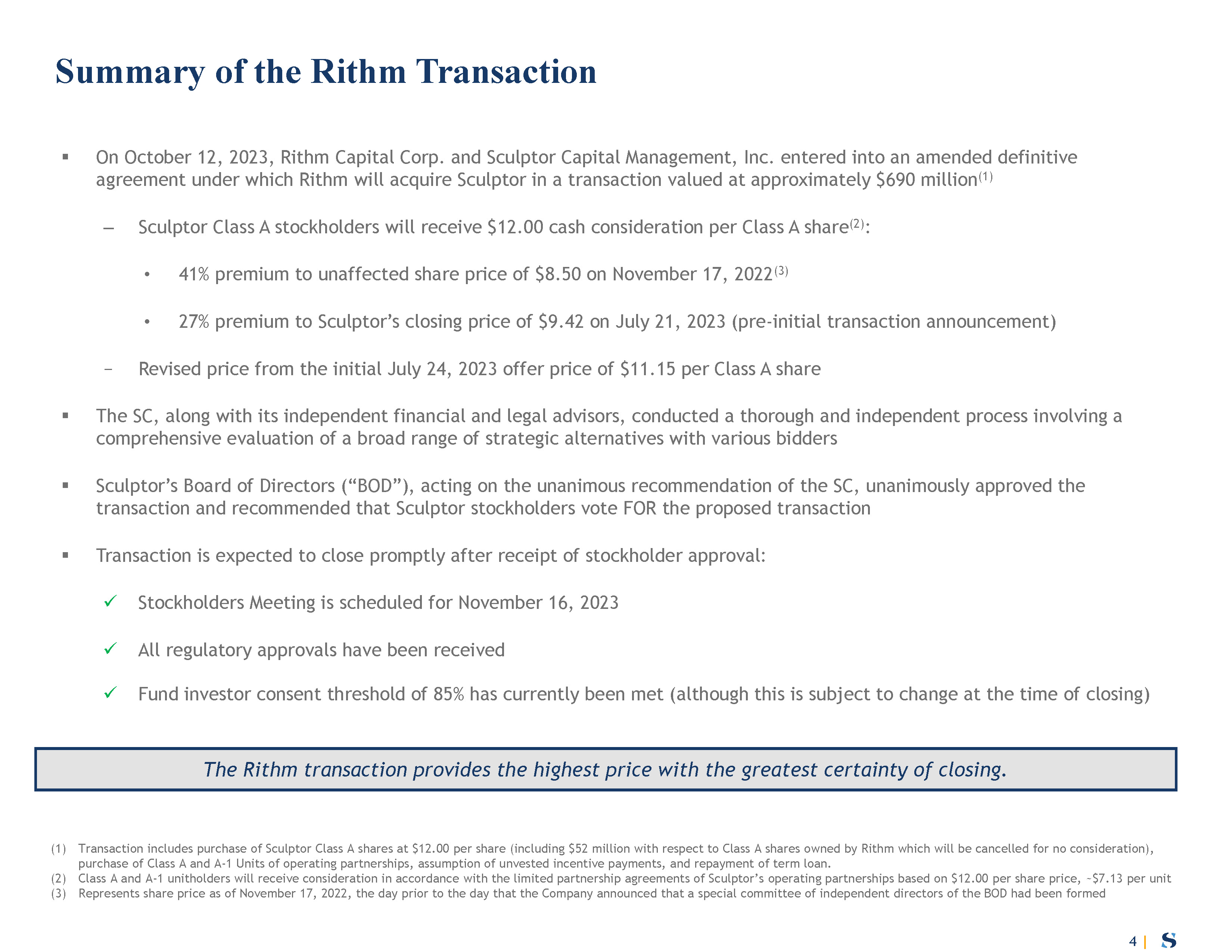 with the previously announced proposed merger (the “Transaction”) involving Sculptor Capital Management, Inc. and certain subsidiaries of Rithm Capital Corp. (“Rithm”). A copy of the presentation materials to be provided to ISS during the meeting is