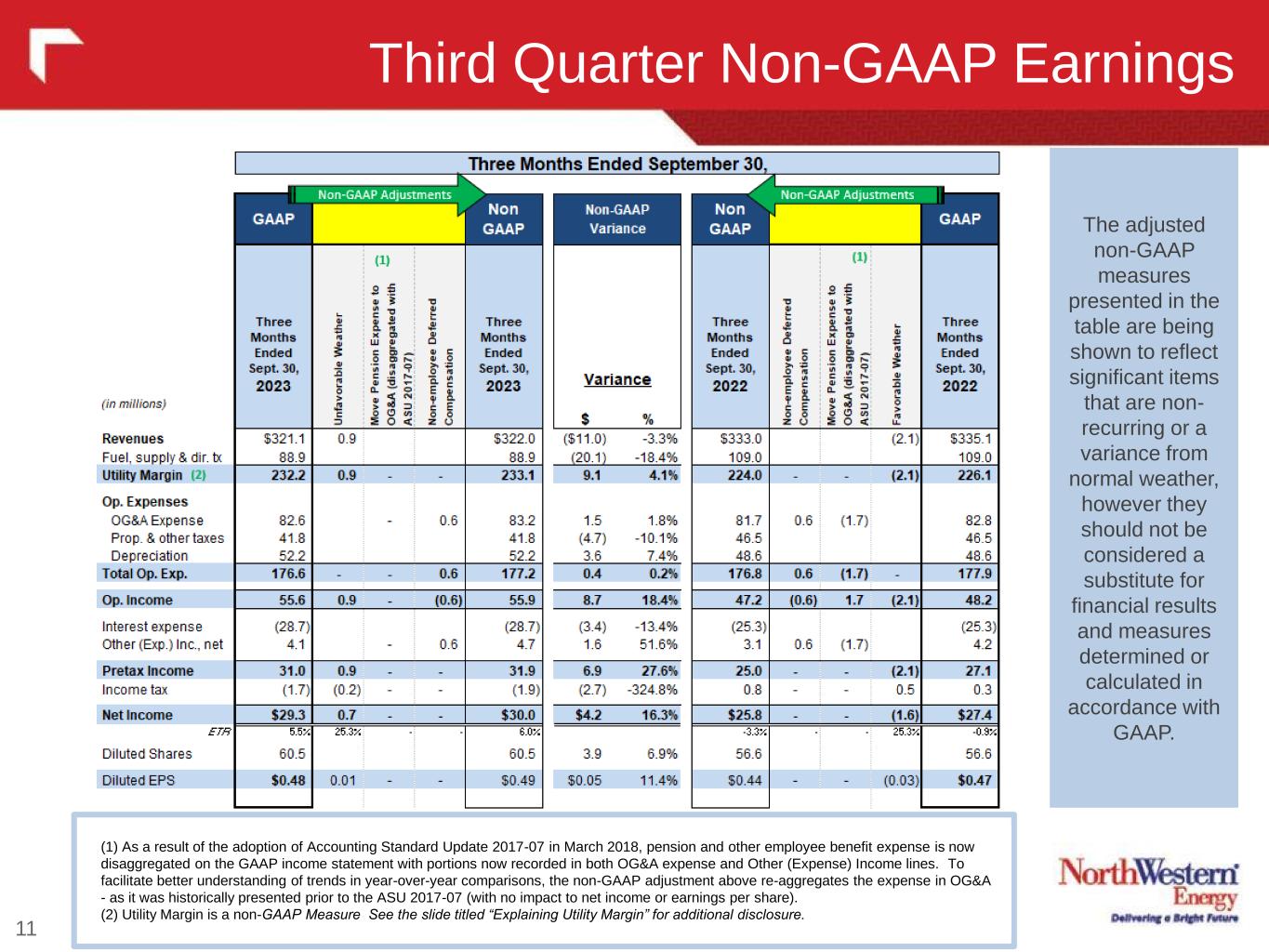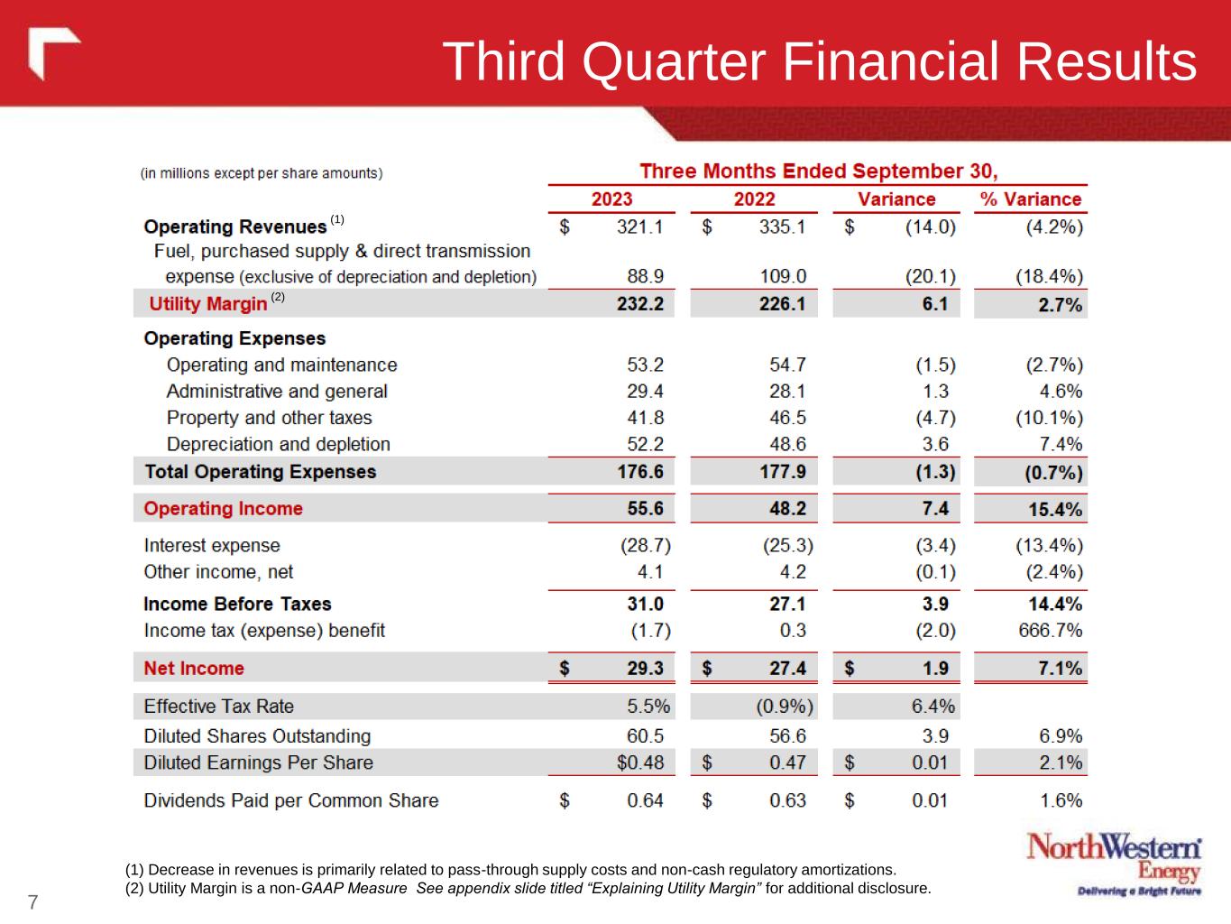NorthWestern Reports Third Quarter 2023 Financial Results