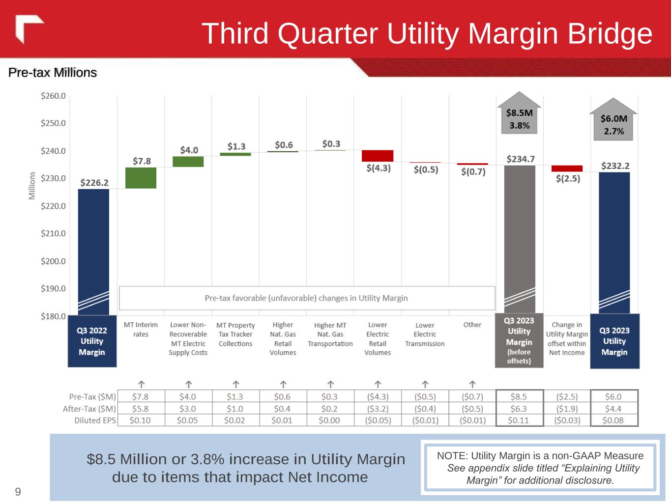 Third Quarter EPS Bridge 8 Improvement in Utility Margin offset by higher expenses and share count dilution After-tax Earnings Per Share See slide 11 and “Non-GAAP Financial Measures” slide in the appendix for additional detail on this measure.