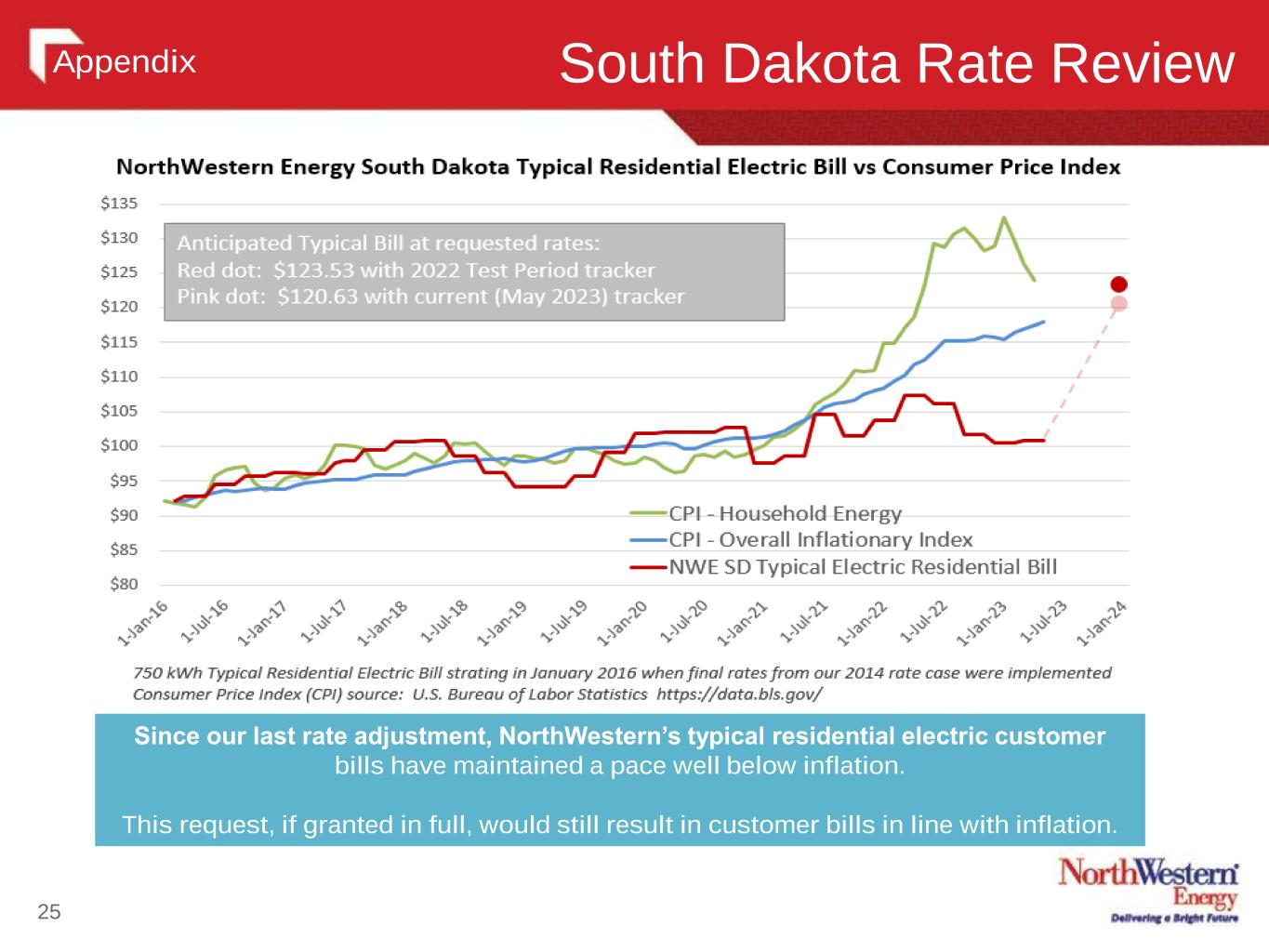 South Dakota Rate Review 25 Appendix Since our last rate adjustment, NorthWestern’s typical residential electric customer bills have maintained a pace well below inflation. This request, if granted in full, would still result in customer bills in line with inflation.