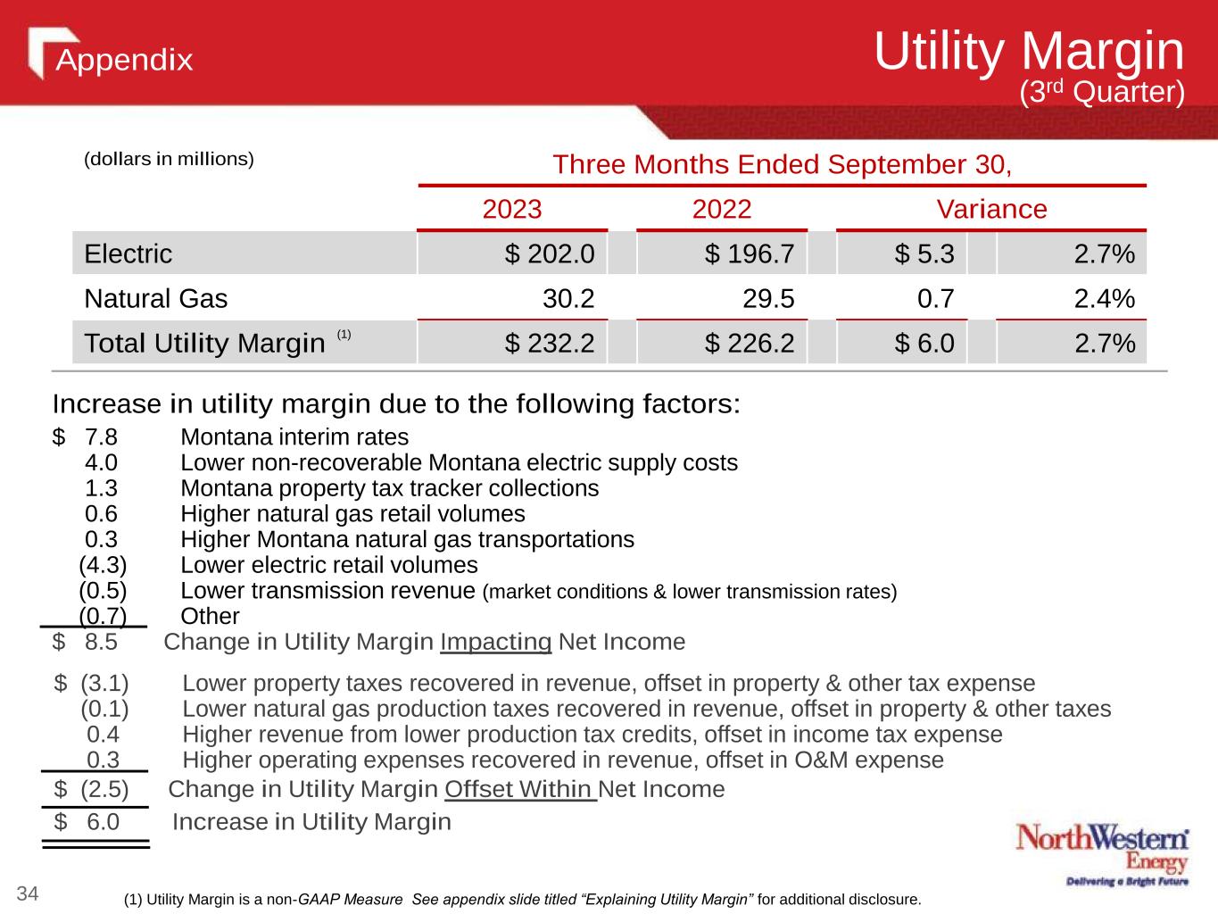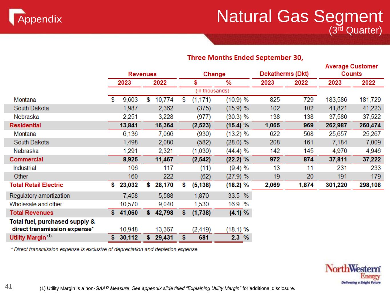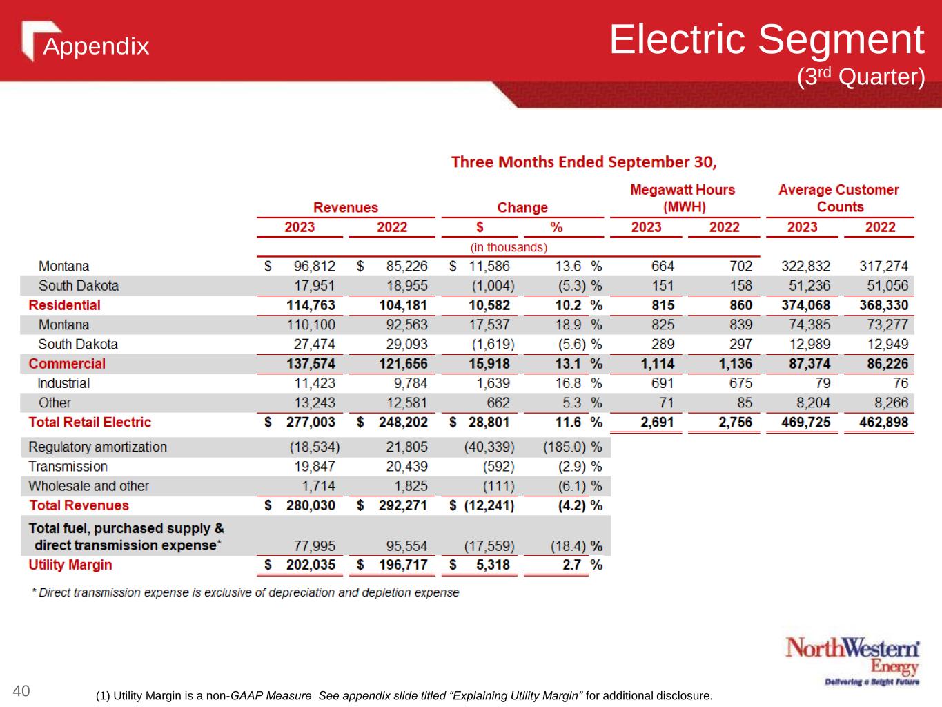 40 Electric SegmentAppendix (1) (3rd Quarter) (1) Utility Margin is a non-GAAP Measure See appendix slide titled “Explaining Utility Margin” for additional disclosure.
