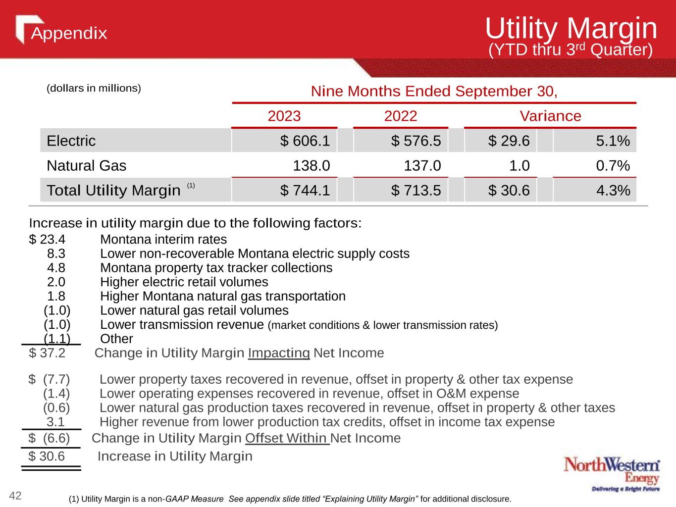 41 Natural Gas SegmentAppendix (1) (3rd Quarter) (1) Utility Margin is a non-GAAP Measure See appendix slide titled “Explaining Utility Margin” for additional disclosure.