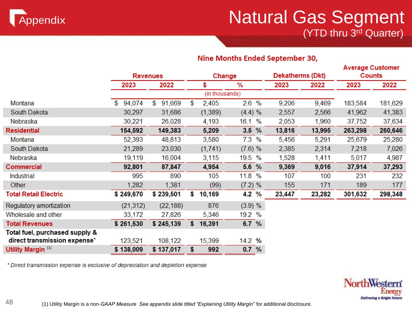 48 Natural Gas SegmentAppendix (1) (YTD thru 3rd Quarter) (1) Utility Margin is a non-GAAP Measure See appendix slide titled “Explaining Utility Margin” for additional disclosure.