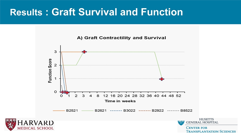 Methods: Recipient Immunosuppresive Treatment Regimen • Induction Therapy – Antithymocyte Globulin (ATG) – α CD20 • Day of Surgery Therapy – Thromboxane inhibitor (BIA) – TNF Inhibitor (Etanercept) – Interleukin 6 inhibitor receptor blocker (Tocilizumab) • Maintenance Therapy – α CD154 (TNX - 1500), Mycophenolate Mofetil(MMF), Corticosteroids – Interleukin 6 inhibitor receptor blocker (Tocilizumab)