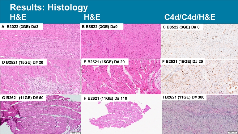 Results: Histology H&E H&E C4d/C4d/H&E A B3022 (3GE) D#3 B B8522 (3GE) D#0 H B2621 (11GE) D# 110 G B2621 (11GE) D# 50 F B2521 (15GE) D# 20 E B2521 (15GE) D# 20 D B2521 (15GE) D# 20 C B8522 (3GE) D# 0 I B2621 (11GE) D# 300