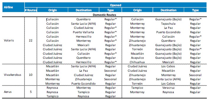 | ● | Monterrey (+23.9%), on its Toluca, Querétaro, Cancún, Santa Lucía (AIFA), Ciudad de México and Houston routes. |