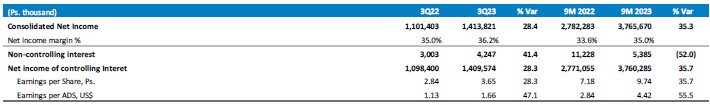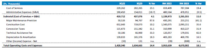 Unless stated otherwise, all comparisons of operating or financial results are made with respect to the comparable period of 2022. The exchange rates used to convert foreign currency amounts were Ps.20.1927 as of September 30, 2022, Ps.19.4715 as of December 31, 2022 and Ps.17.6195 as of September 30, 2023.