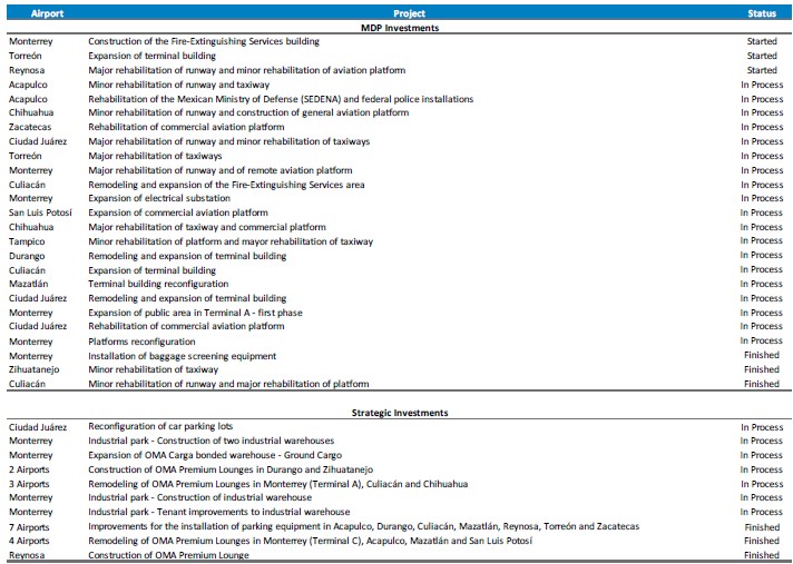 | ● | Capital investments and major maintenance works included in the Master Development Plans (MDPs) plus strategic investments were Ps.964 million in the quarter. |