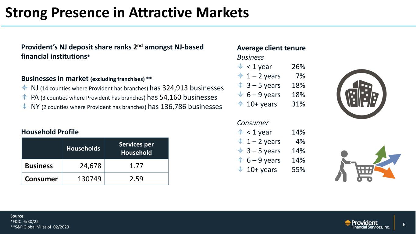 NYSE: PFS POPULATION (as of February 2023 Estimates) NJ – 9,317,771 NY – 19,879,255 Queens – 2,340,201 Nassau – 1,393,596 PA – 12,979,881 Bucks – 647,873 Lehigh – 378,463 Northampton – 315,255 MEDIAN INCOME AND NATIONAL RANK NJ - $95,596 – 4th nationwide PA - $70,856 – 27th nationwide NY - $80,716 – 15th nationwide * Source: S&P Global MI (Median income and national rank as 1/2023; Population data as of 02/2023) Densely populated, lucrative markets Highly educated, wealthy population Diverse economy proximate to New York City and Philadelphia metro areas Strong Presence in Attractive Markets* 5