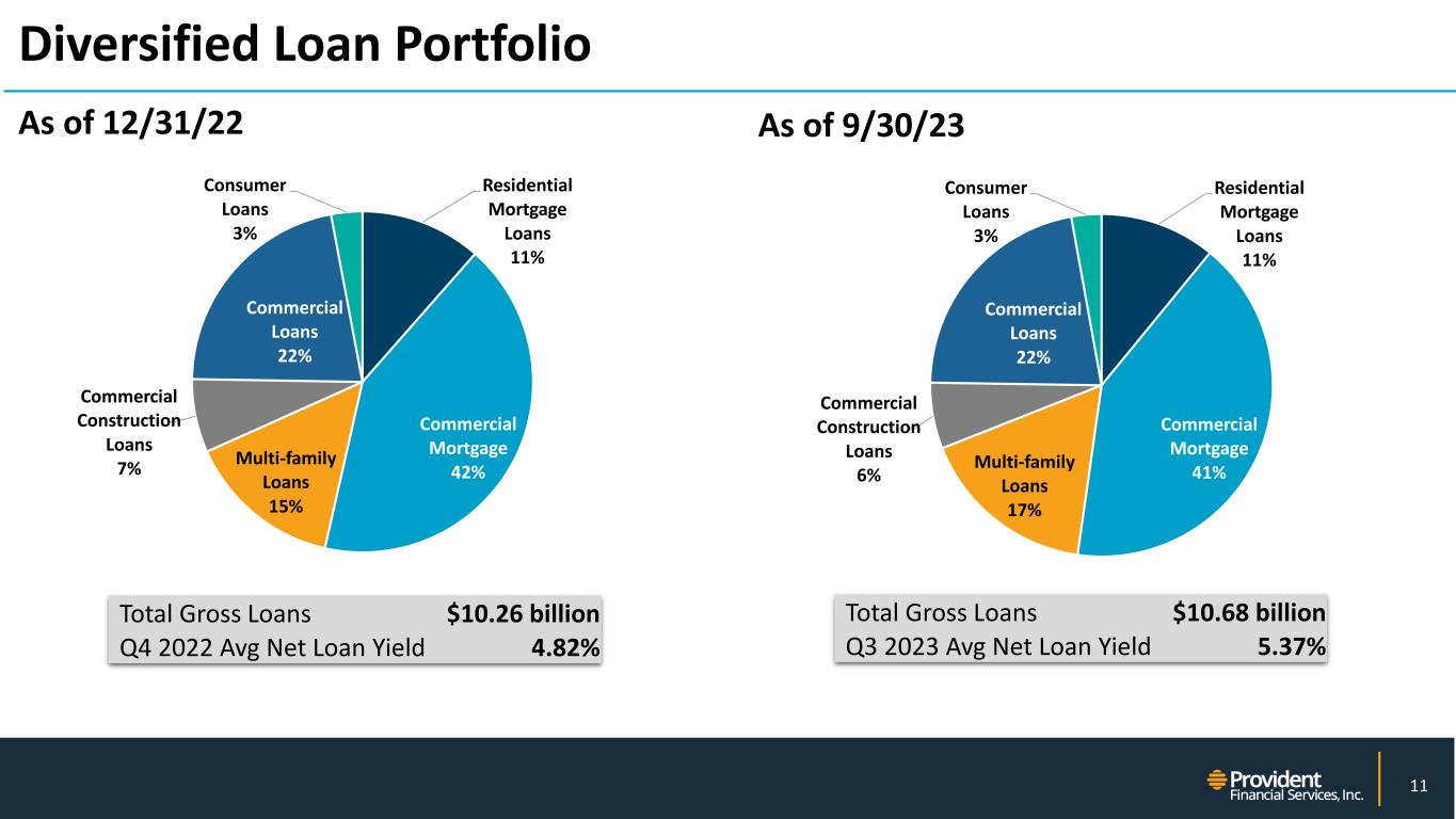 NYSE: PFS Stable Core Funding Base $ in thousands ($) Balance Total Average Deposits 10,264,994 Average Branch Size 109,202 Cost of Interest Bearing Deposits: 0.90% Total Cost of Deposits: 0.67% AVERAGE DEPOSIT COMPOSITION AVERAGE DEPOSIT COMPOSITION 10 Savings deposits 13.6% Money market accounts 23.3% NOW accounts 31.9% Non-interest bearing deposits 25.0% Certificates of deposit 6.3% Muni 18.3% Commercial Deposits 28.3% Retail Deposits 53.3% Savings deposits 12.1% Money market accounts 22.0% NOW accounts 34.0% Non- interest bearing deposits 21.7% Certificates of deposit 10.3% December 2022 September 2023 Muni 17.3% Commercial Deposits 31.7% Retail Deposits 51.0% December 2022 September 2023 Cost of Interest Bearing Deposits 2.22% Total Cost of Deposits 1.74%