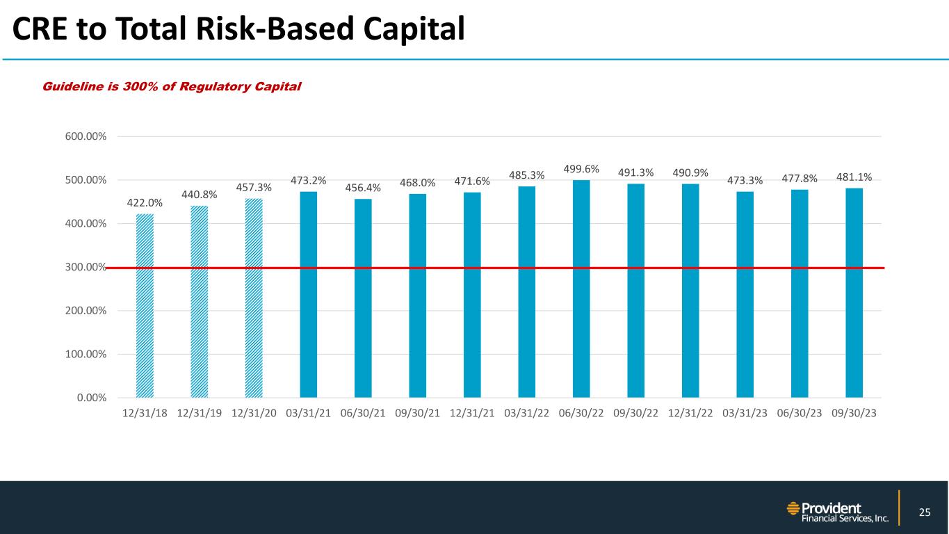 NYSE: PFS As of 9/30/23 ($ in thousands) CRE Investment By Property Type 24 PROPERTY TYPE COUNT $ OUTSTANDING % OUTSTANDING WARR Multi-Family 531 1,795,218 28.92% 3.24 Retail 525 1,724,042 27.77% 3.32 Industiral 304 1,218,051 19.62% 3.36 Office 268 483,259 7.78% 3.52 Mixed 358 432,452 6.97% 3.34 Special Use Property 65 197,725 3.18% 3.74 Residential 342 170,944 2.75% 3.52 Hotel 30 150,179 2.42% 4.45 Land 13 36,253 0.58% 4.07 TOTAL PORTFOLIO 2,436 6,208,122 100.00% 3.37