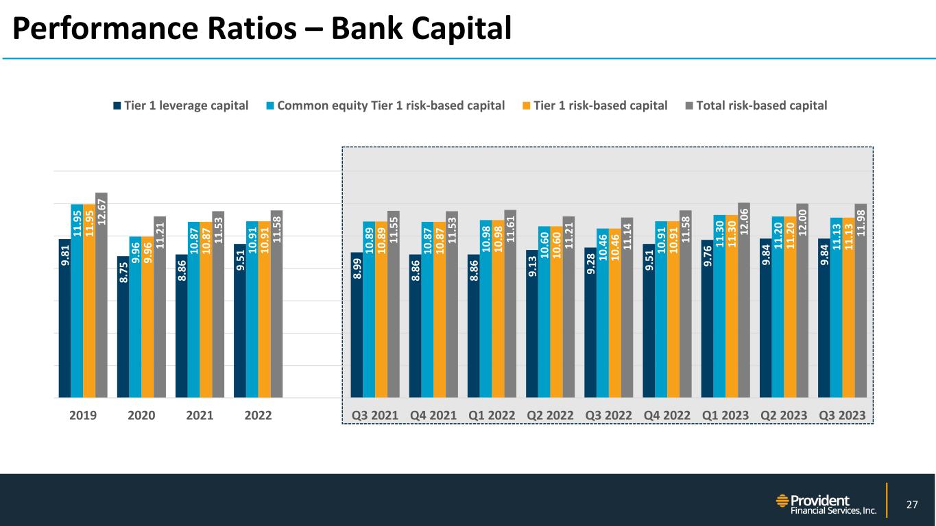 NYSE: PFS Performance Ratios – Holdco Capital 26 10 .3 4 9. 30 9. 45 10 .0 0 9. 55 9. 45 9. 43 9. 62 9. 78 10 .0 0 10 .1 7 10 .2 2 10 .2 2 12 .7 4 10 .4 6 11 .4 7 11 .3 6 11 .4 3 11 .4 7 11 .5 6 11 .0 5 10 .9 1 11 .3 6 11 .6 6 11 .5 3 11 .4 412 .7 4 10 .5 8 11 .5 9 11 .4 7 11 .5 5 11 .5 9 11 .6 8 11 .1 6 11 .0 2 11 .4 7 11 .7 8 11 .6 3 11 .5 513 .4 7 11 .9 4 12 .2 5 12 .1 5 12 .3 3 12 .2 5 12 .3 2 11 .7 7 11 .7 1 12 .1 5 12 .5 3 12 .4 4 12 .4 0 2019 2020 2021 2022 Q3 2021 Q4 2021 Q1 2022 Q2 2022 Q3 2022 Q4 2022 Q1 2023 Q2 2023 Q3 2023 Tier 1 leverage capital Common equity Tier 1 risk-based capital Tier 1 risk-based capital Total risk-based capital