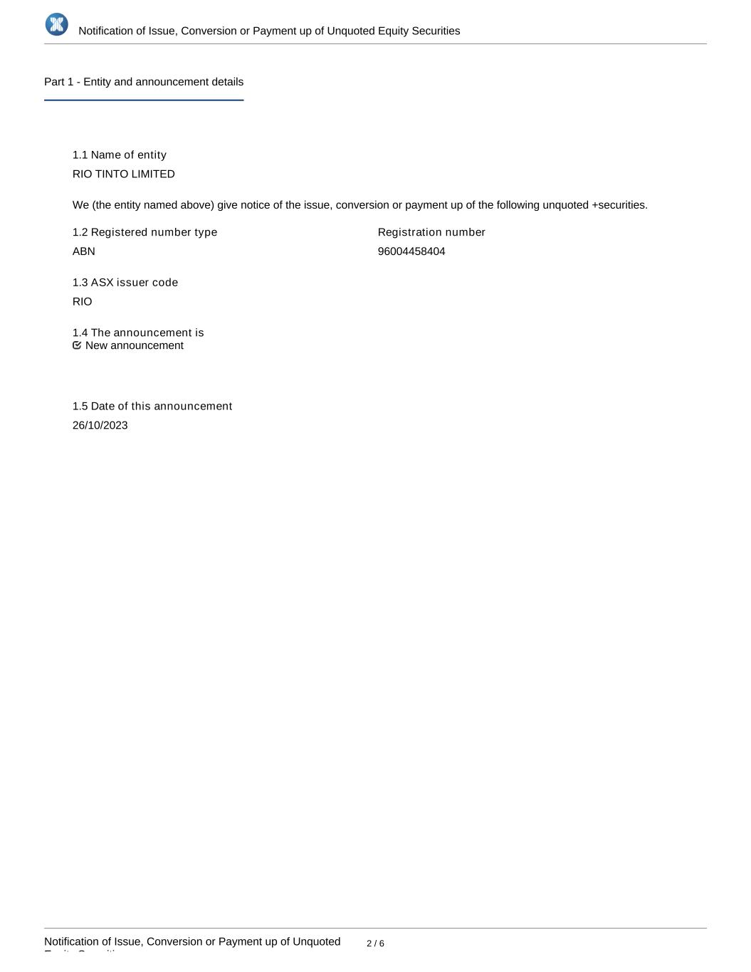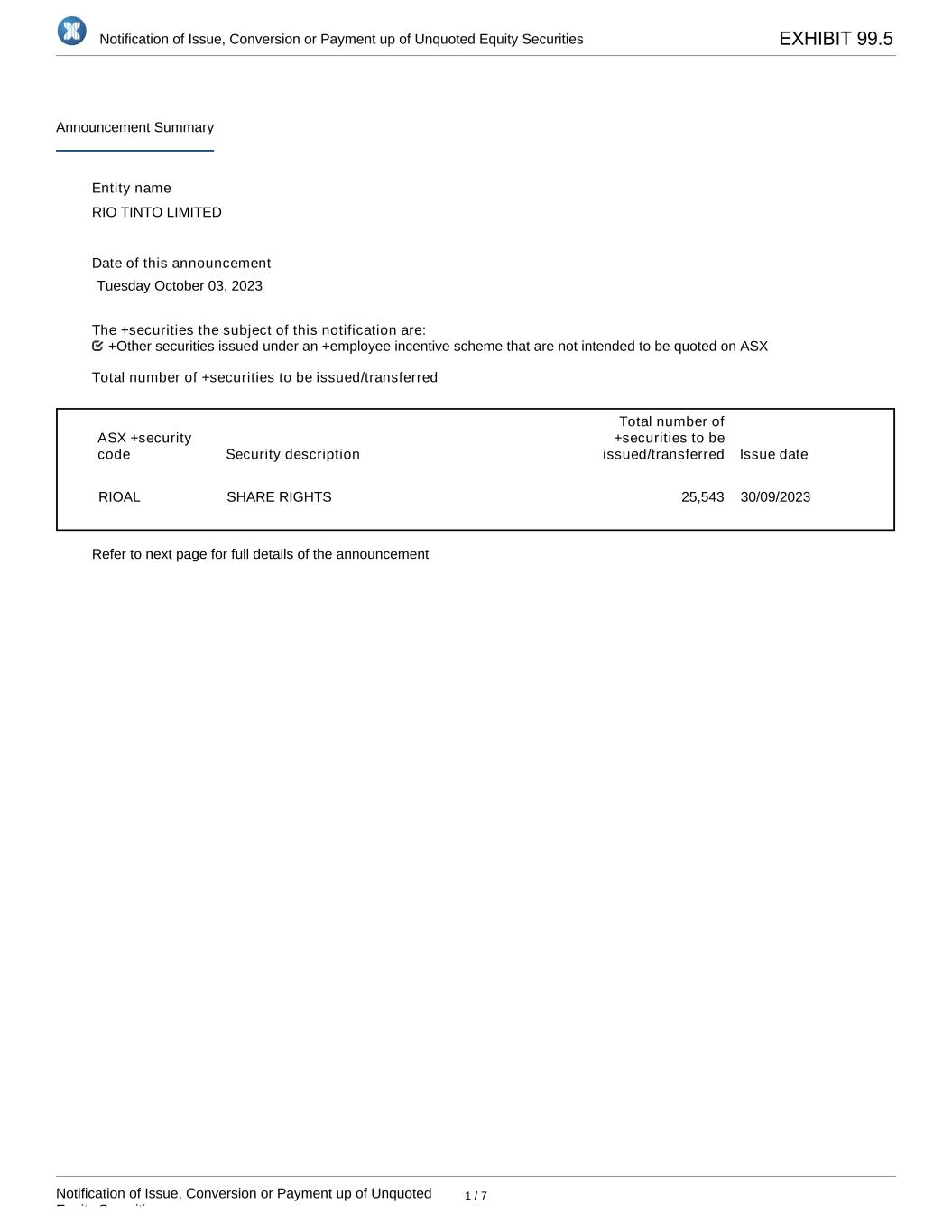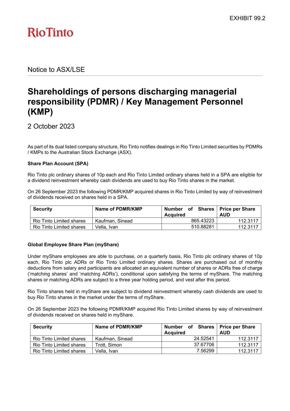 | Rio Tinto plc | Rio Tinto Limited | ||||