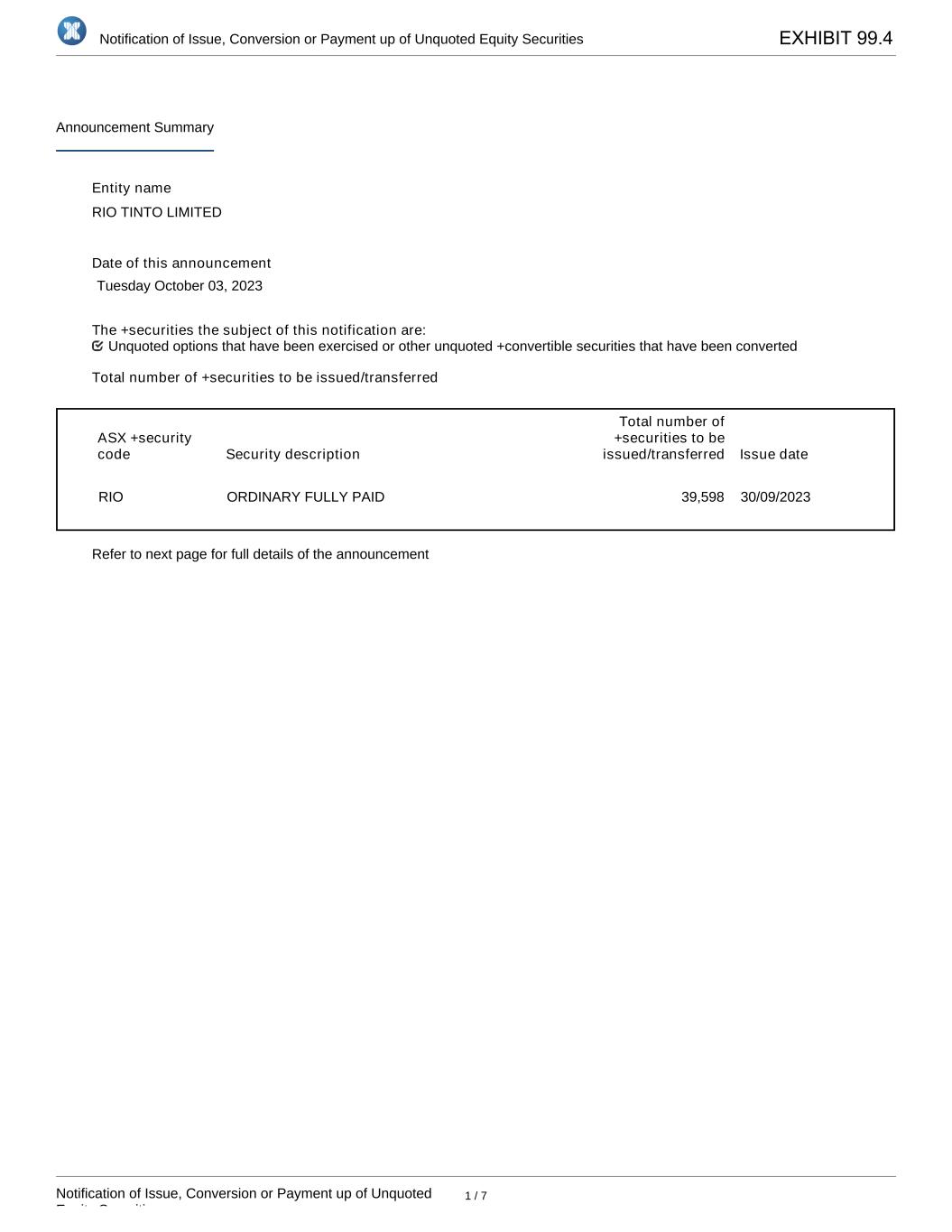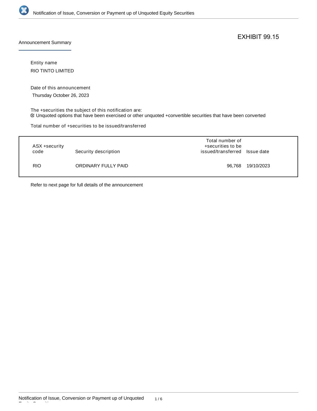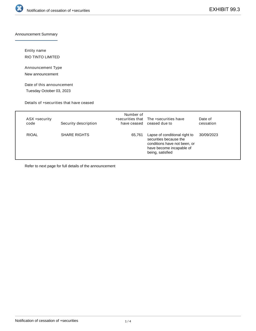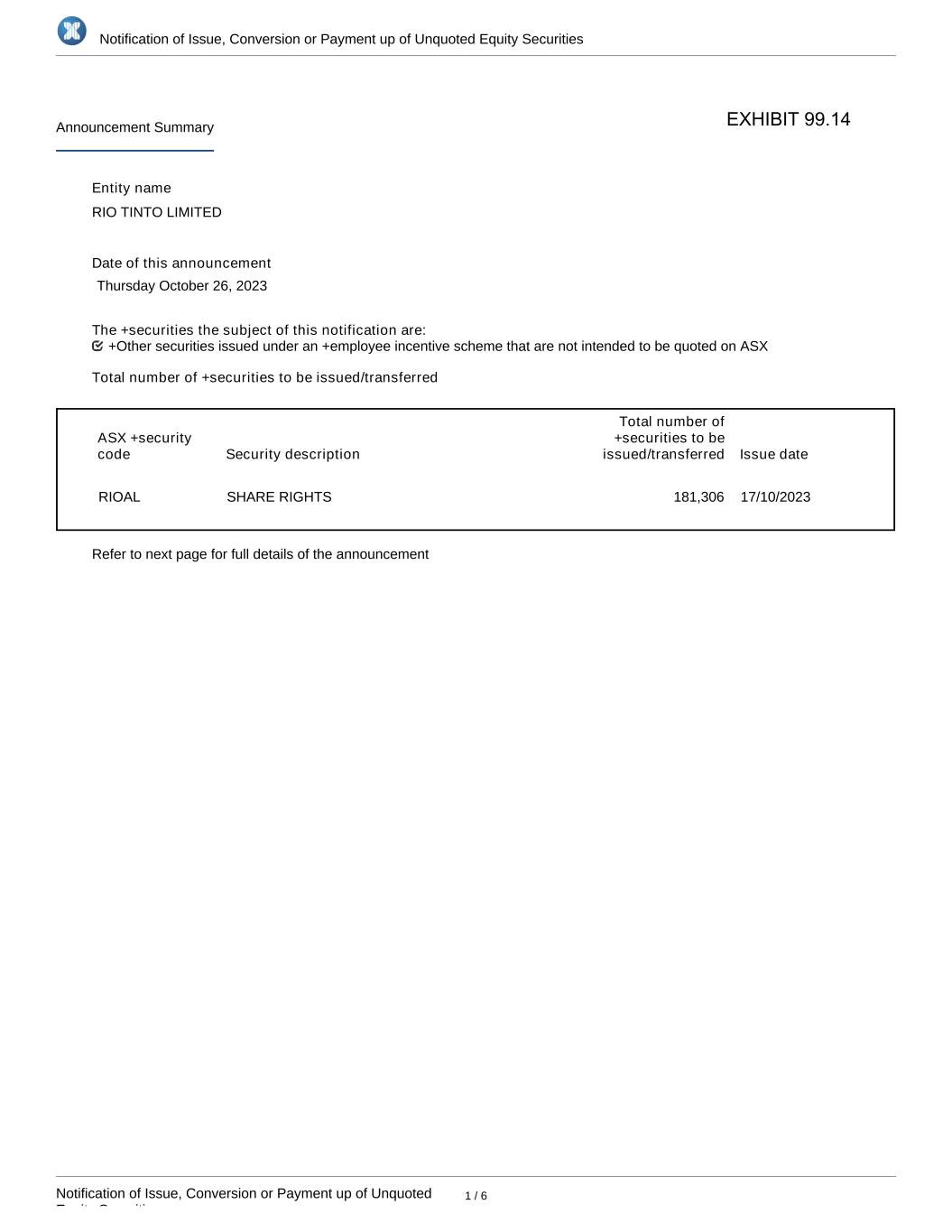| Rio Tinto plc | Rio Tinto Limited | ||||