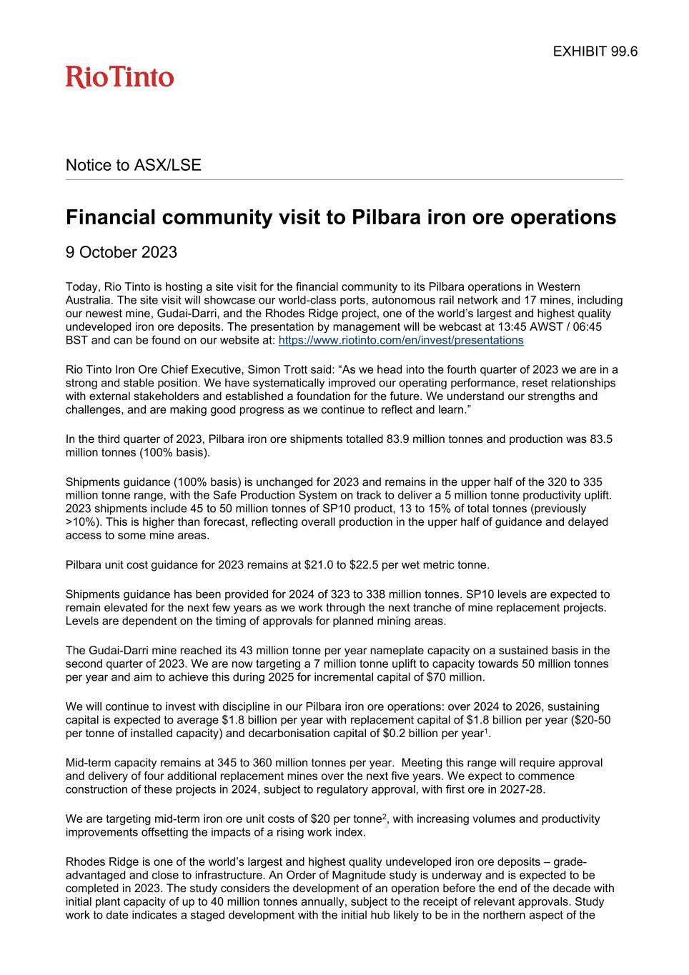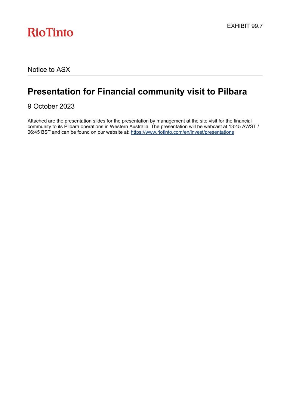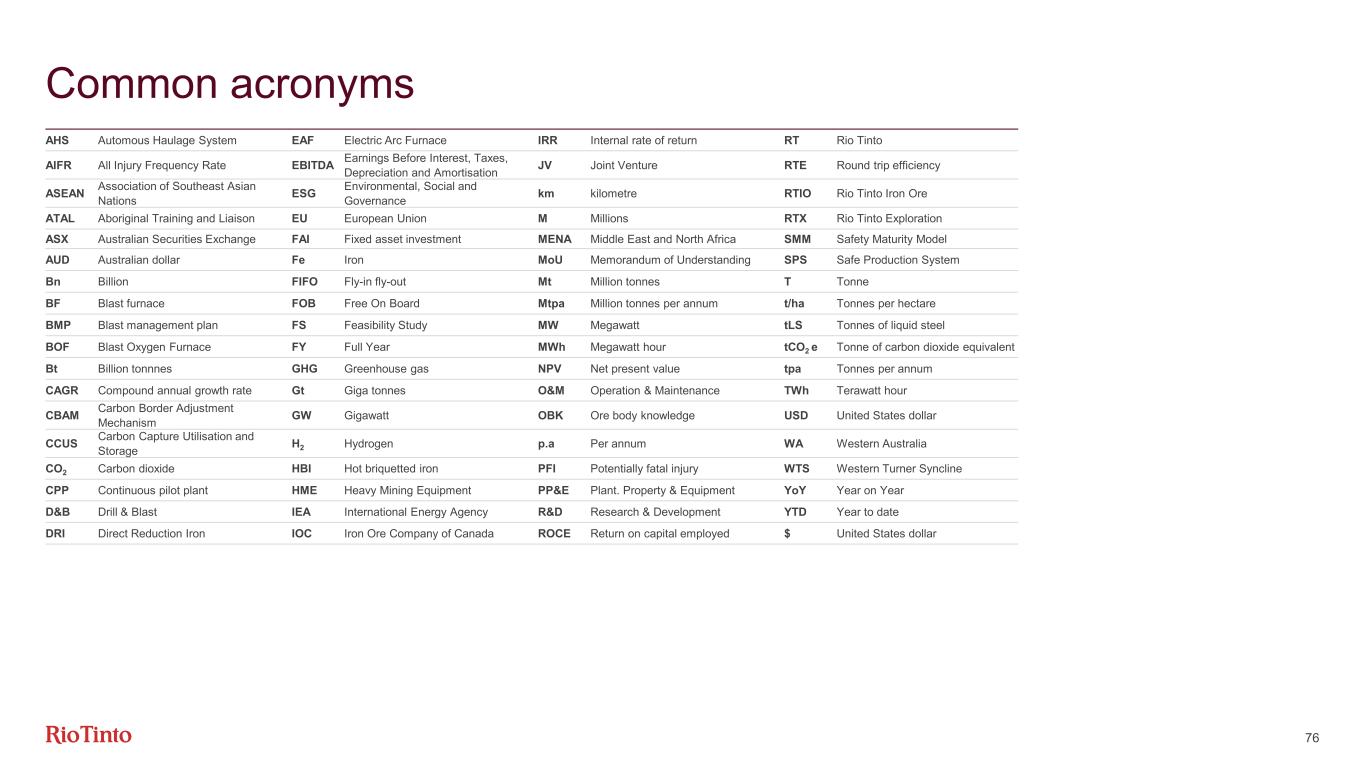| Rio Tinto plc | Rio Tinto Limited | ||||||||||