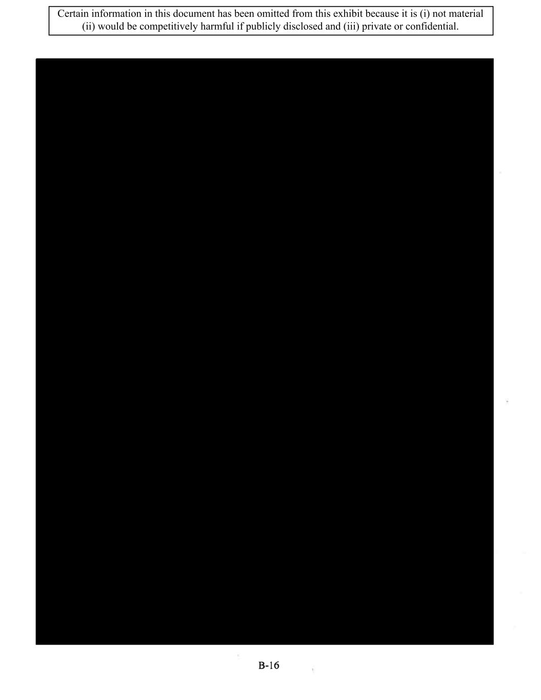 Certain information in this document has been omitted from this exhibit because it is (i) not material (ii) would be competitively harmful if publicly disclosed and (iii) private or confidential.