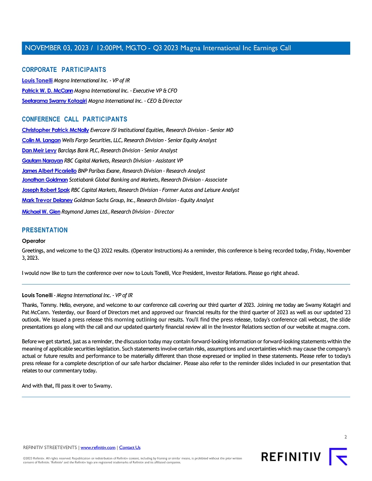 | Exhibit 99.2 | Q3 2023 Results Call Presentation slides (November 3, 2023) | |