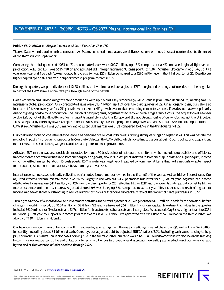 | Exhibit 99.3 | Q3 2023 Results Call Transcript (November 3, 2023) |