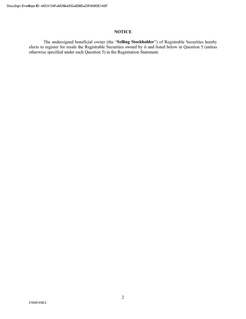 On September 15, 2023 the Issuer filed a motion to dismiss the Registration Rights Complaint in which the Issuer argues, among other things, that Wittekind and the Trusts are not entitled to the registration rights under the Investor Rights Agreement because “they cannot meet the definition of Stockholders or Permitted Transferees.” The Reporting Person believes this position is without merit and intends to challenge it in an amended complaint the Reporting Person intends to cause the Registration Rights Plaintiffs to file with the Delaware Court of Chancery (the “Amended Registration Rights Complaint”).
