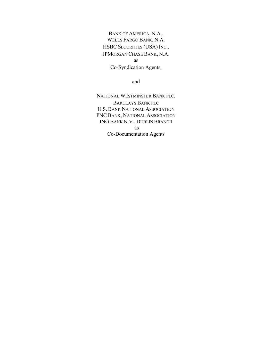 BANK OF AMERICA, N.A., WELLS FARGO BANK, N.A. HSBC SECURITIES (USA) INC., JPMORGAN CHASE BANK, N.A. as Co-Syndication Agents, and NATIONAL WESTMINSTER BANK PLC, BARCLAYS BANK PLC U.S. BANK NATIONAL ASSOCIATION PNC BANK, NATIONAL ASSOCIATION ING BANK N.V., DUBLIN BRANCH as Co-Documentation Agents