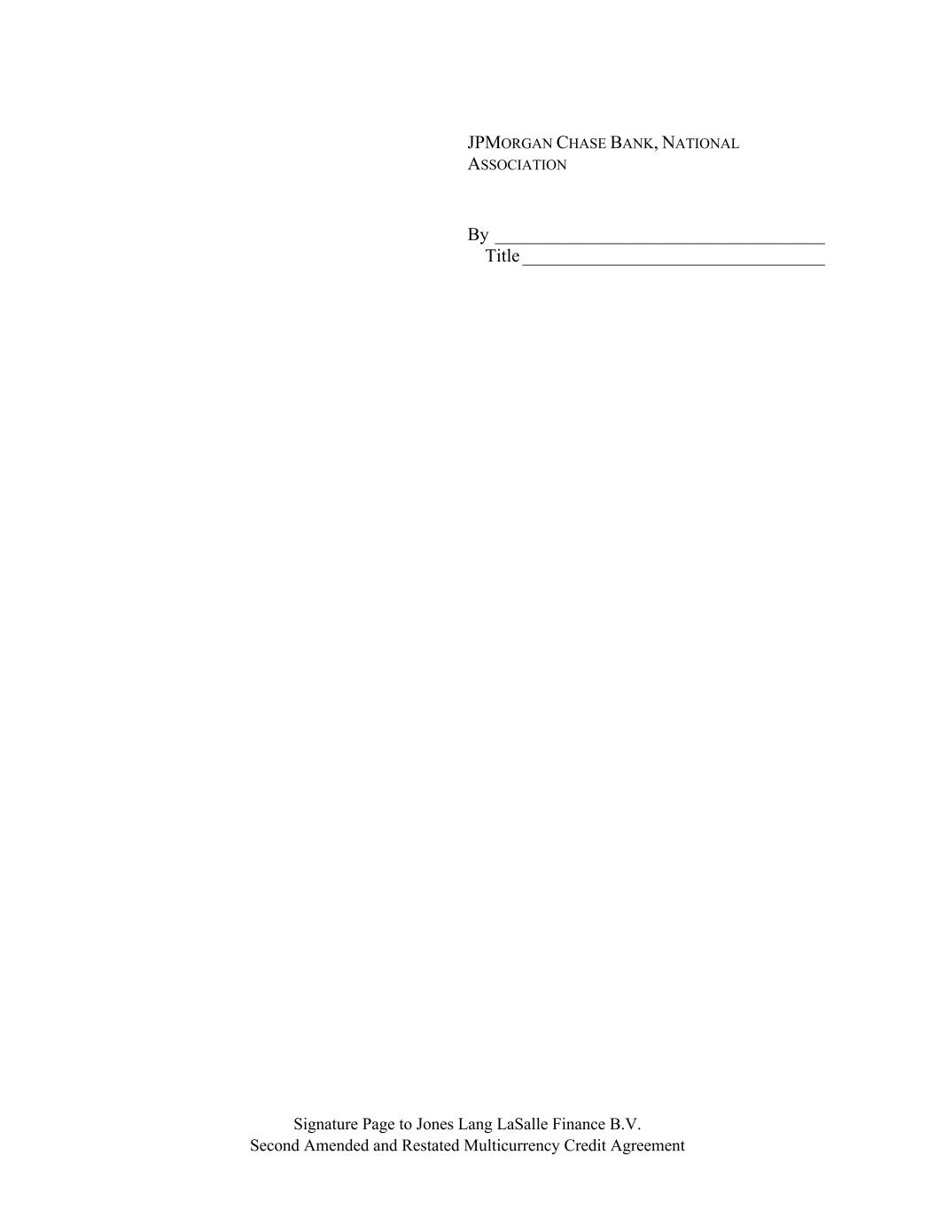 Signature Page to Jones Lang LaSalle Finance B.V. Second Amended and Restated Multicurrency Credit Agreement JPMORGAN CHASE BANK, NATIONAL ASSOCIATION By ____________________________________ Title _________________________________