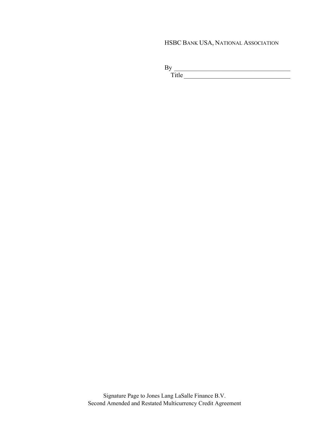 Signature Page to Jones Lang LaSalle Finance B.V. Second Amended and Restated Multicurrency Credit Agreement HSBC BANK USA, NATIONAL ASSOCIATION By ____________________________________ Title _________________________________