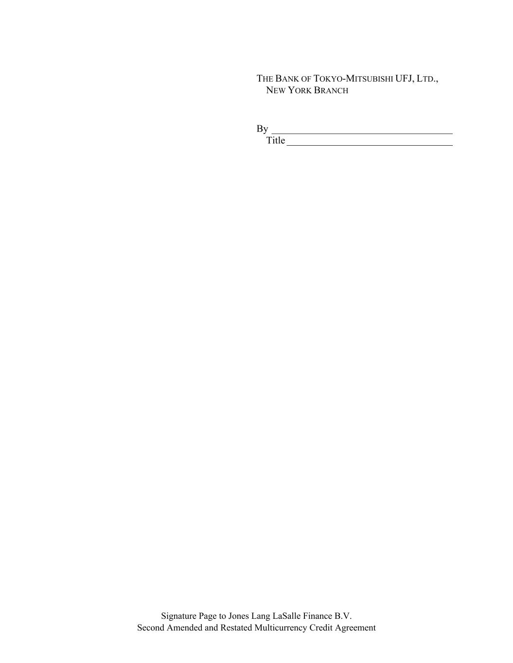 Signature Page to Jones Lang LaSalle Finance B.V. Second Amended and Restated Multicurrency Credit Agreement THE BANK OF TOKYO-MITSUBISHI UFJ, LTD., NEW YORK BRANCH By ____________________________________ Title _________________________________