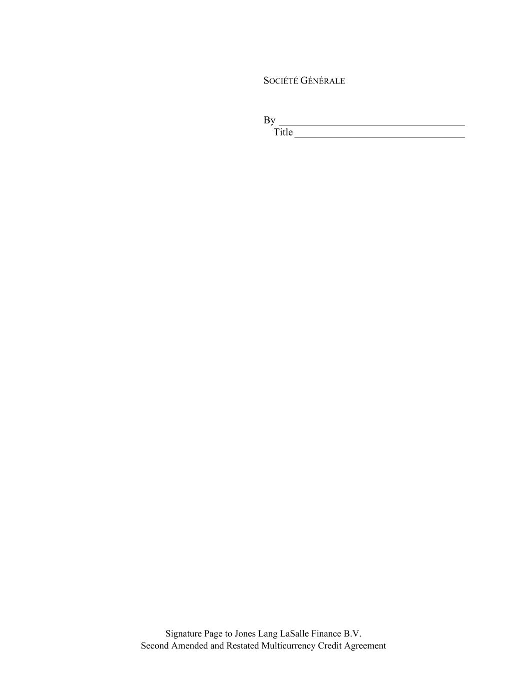 Signature Page to Jones Lang LaSalle Finance B.V. Second Amended and Restated Multicurrency Credit Agreement SOCIÉTÉ GÉNÉRALE By ____________________________________ Title _________________________________