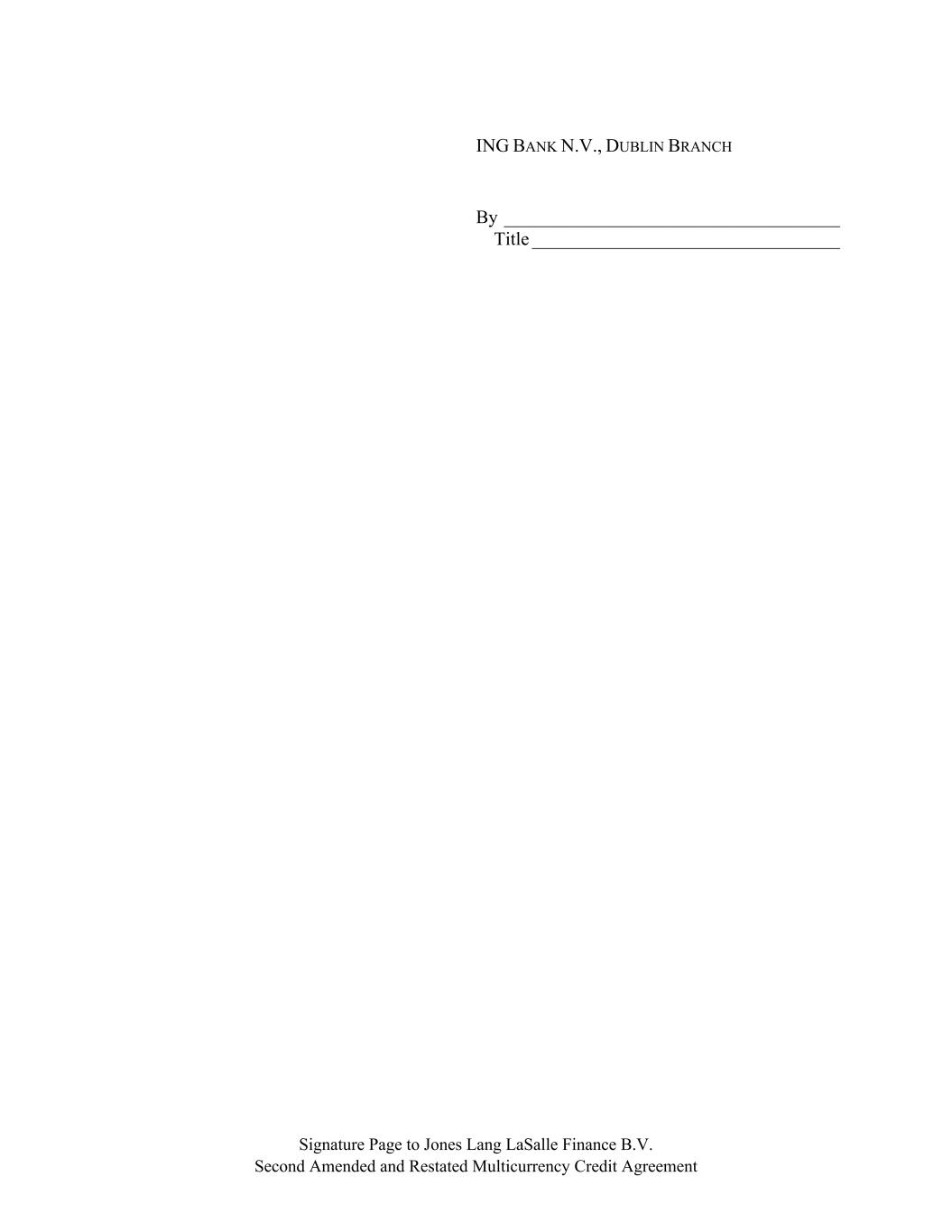 Signature Page to Jones Lang LaSalle Finance B.V. Second Amended and Restated Multicurrency Credit Agreement ING BANK N.V., DUBLIN BRANCH By ____________________________________ Title _________________________________