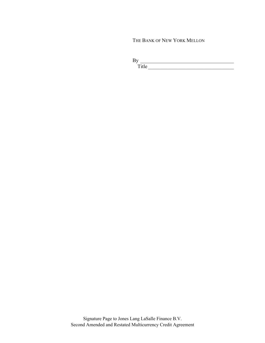 Signature Page to Jones Lang LaSalle Finance B.V. Second Amended and Restated Multicurrency Credit Agreement THE BANK OF NEW YORK MELLON By ____________________________________ Title _________________________________