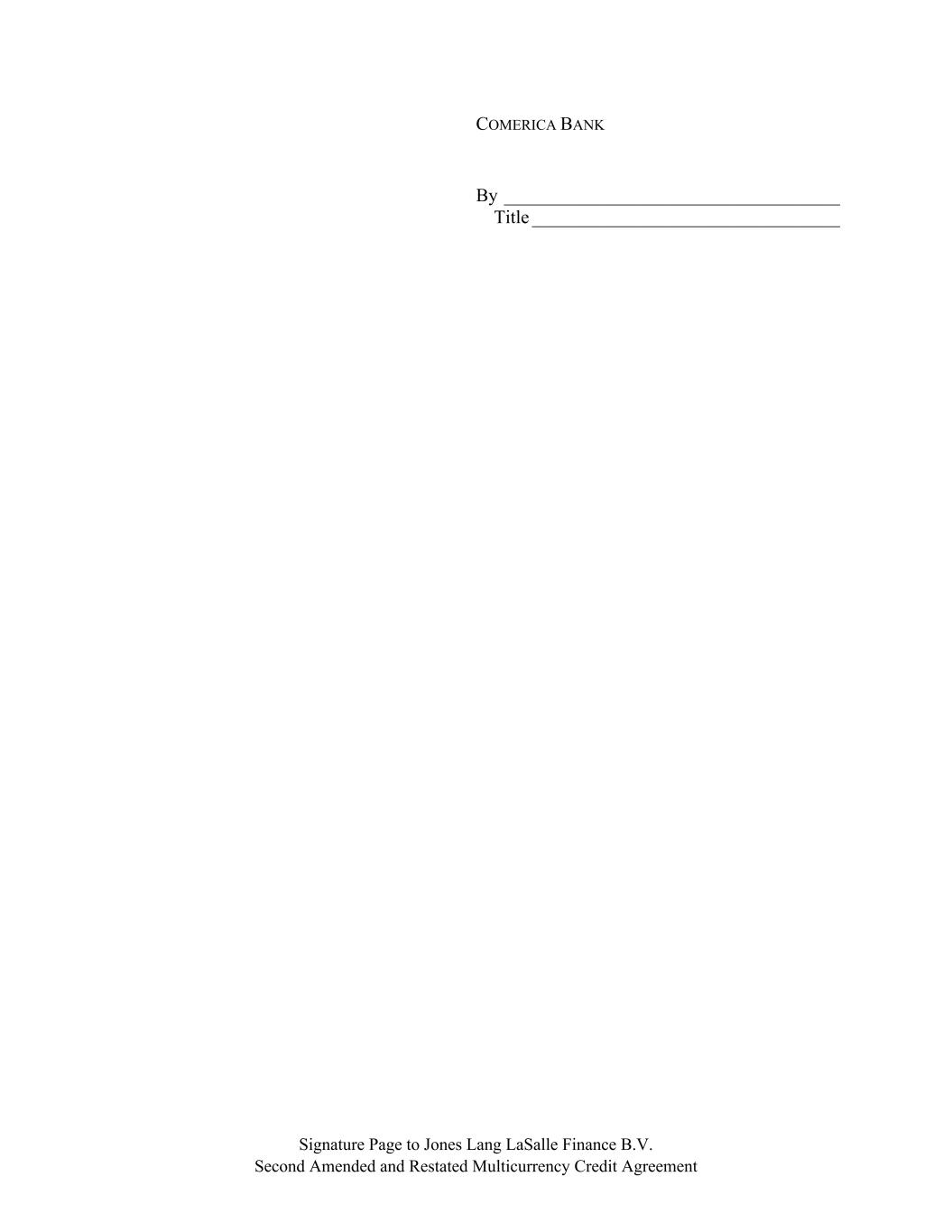 Signature Page to Jones Lang LaSalle Finance B.V. Second Amended and Restated Multicurrency Credit Agreement COMERICA BANK By ____________________________________ Title _________________________________
