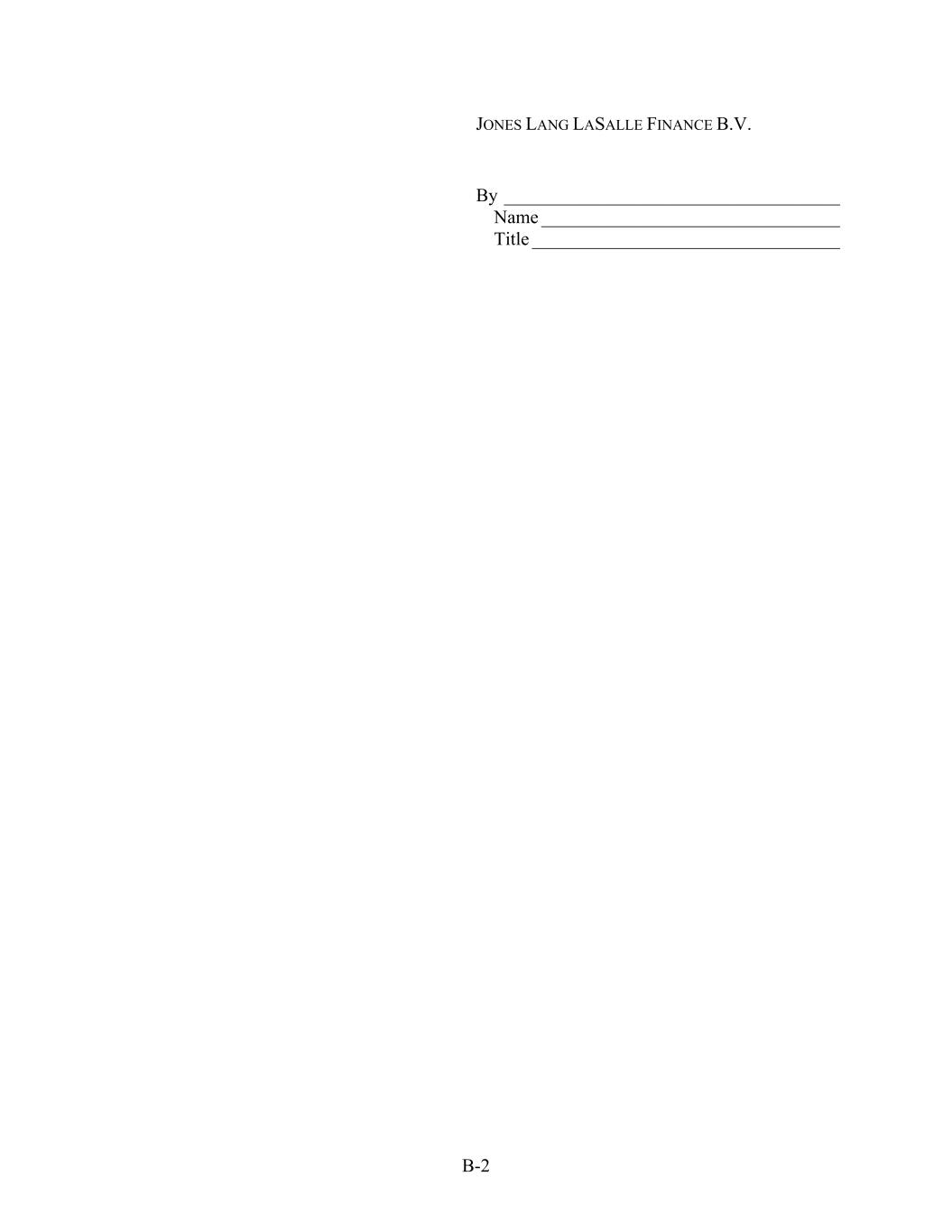B-2 JONES LANG LASALLE FINANCE B.V. By ____________________________________ Name ________________________________ Title _________________________________