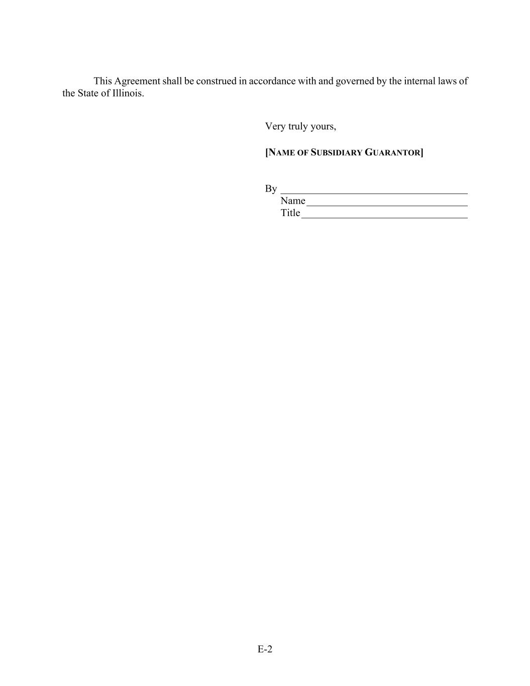 E-2 This Agreement shall be construed in accordance with and governed by the internal laws of the State of Illinois. Very truly yours, [NAME OF SUBSIDIARY GUARANTOR] By ____________________________________ Name_______________________________ Title________________________________