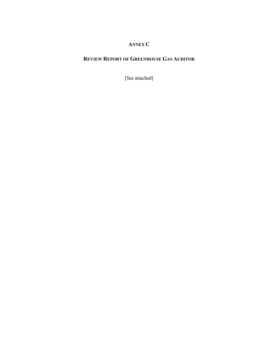 ANNEX C REVIEW REPORT OF GREENHOUSE GAS AUDITOR [See attached]