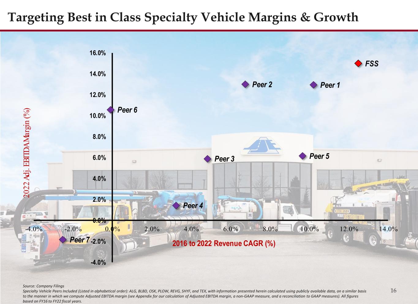 16 FSS Peer 1 Peer 2 Peer 3 Peer 4 Peer 5 Peer 6 Peer 7 -4.0% -2.0% 0.0% 2.0% 4.0% 6.0% 8.0% 10.0% 12.0% 14.0% 16.0% -4.0% -2.0% 0.0% 2.0% 4.0% 6.0% 8.0% 10.0% 12.0% 14.0% 20 22 Ad j. E BI TD A M ar gi n (% ) 2016 to 2022 Revenue CAGR (%) Targeting Best in Class Specialty Vehicle Margins & Growth Source: Company Filings Specialty Vehicle Peers Included (Listed in alphabetical order): ALG, BLBD, OSK, PLOW, REVG, SHYF, and TEX, with information presented herein calculated using publicly available data, on a similar basis to the manner in which we compute Adjusted EBITDA margin (see Appendix for our calculation of Adjusted EBITDA margin, a non-GAAP measure, and a reconciliation to GAAP measures). All figures based on FY16 to FY22 fiscal years.