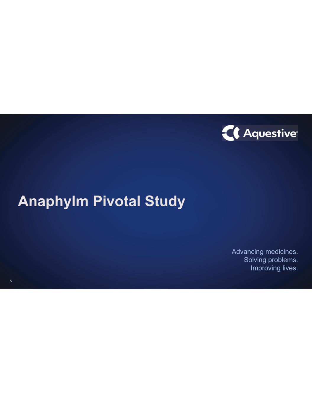 Advancing medicines. Solving problems. Improving lives. Anaphylm Pivotal Study 5